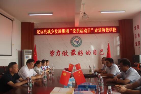 9月9日,定远县城乡发展集团党委书记陈德军携集团三个党支部及部分党员深入特教学校开展献爱心活动。集团党委副书记马涛,党委委员、机关党支部书记刘成俊,党委委员、工会主席邓继琴,党委委员、机关党支部组织委员诸鹏,国资公司党支部书记朱迎松等参加献爱心活动。
