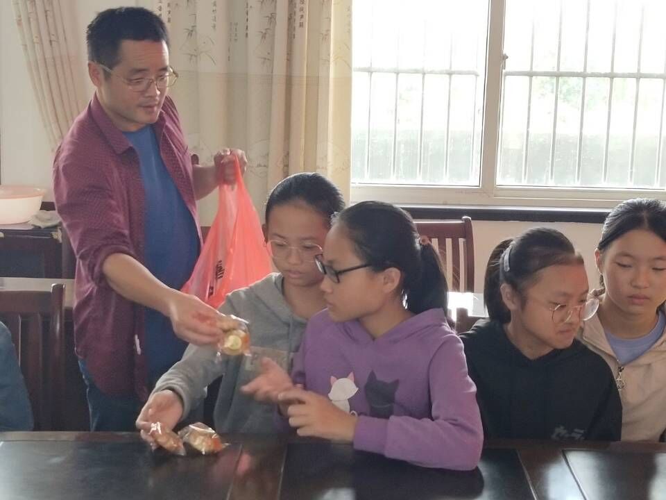 三,开展关爱特殊群体学生活动,请留守儿童品尝月饼。即使父母不在身边,也让孩子们感受到老师们深深的爱意。