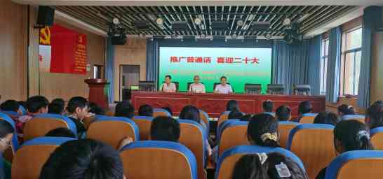 ~ 在全国推普周之际,定远县严桥学校开展“喜迎二十大 推广普通话”活动,活动由七、八、九全体学生参加,由该校寇家明副校长主持。