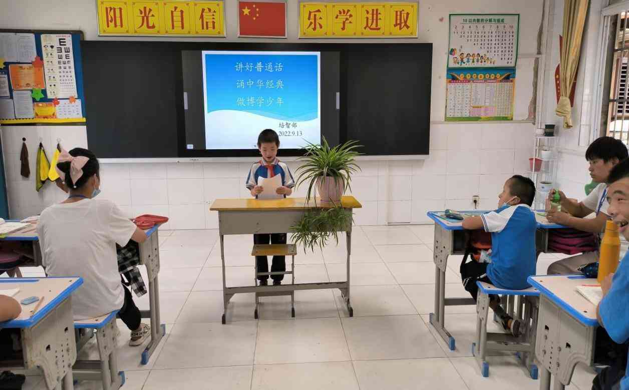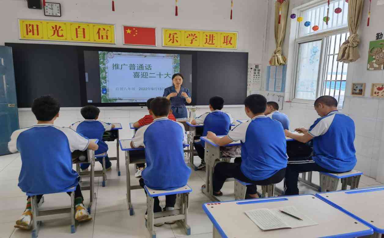 9月13日,在升旗仪式上,学校进行“推广普通话,喜迎二十大”国旗下讲话,向全校师生发出“推普周”活动倡议,介绍推广普通话和使用规范字的意义。同时,各班利用思政课开展了“说好普通话”主题班会,在师生和家长中营造说好普通话的良好氛围。