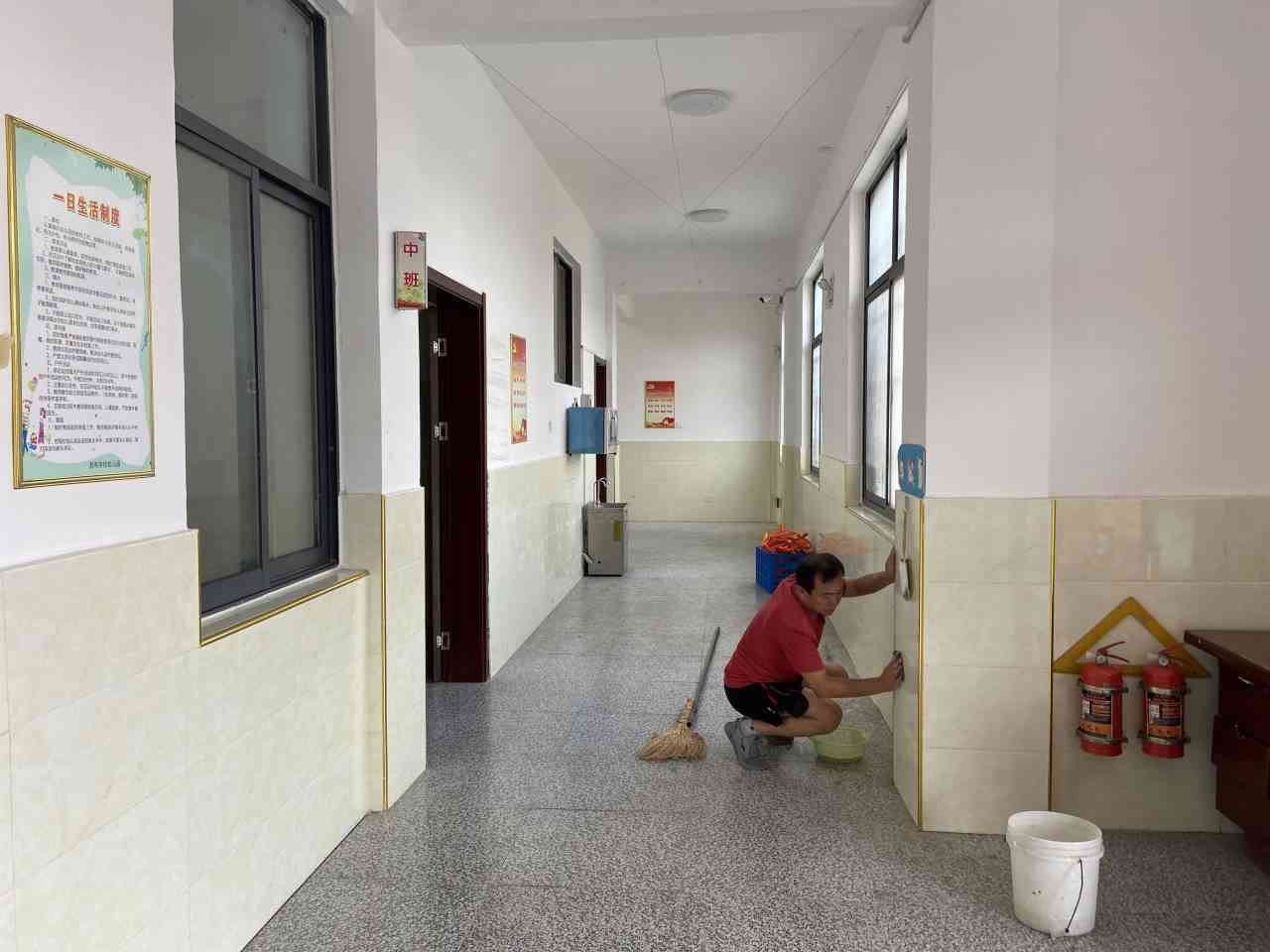 ~ 打扫卫生不仅繁琐,更是辛苦,但在率先垂范的该校党支部书记、校长韩有伦的感召下,参加劳动的各位老师秉承着对幼儿负责的态度,个个不怕脏、不怕累,努力用汗水为孩子们营造一个安全、健康、舒适的家。(供稿:张道云 审核:韩有伦)