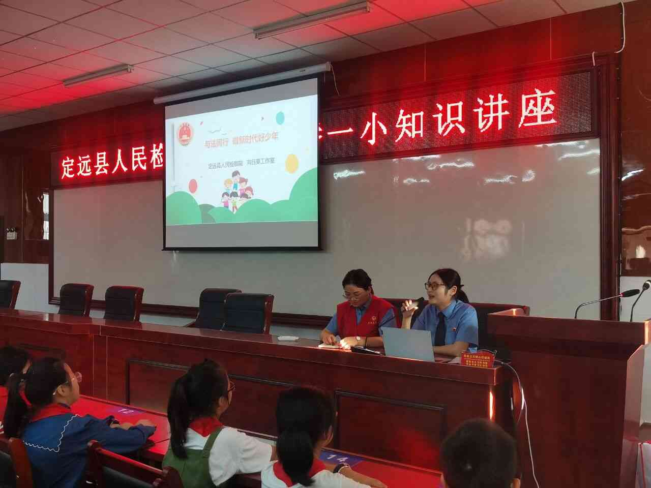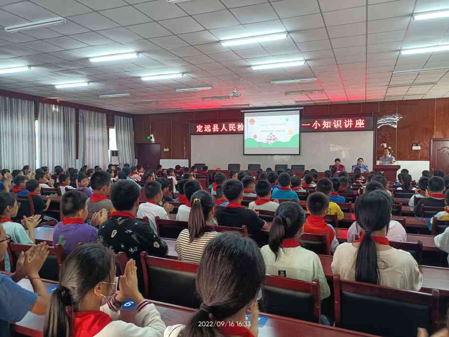 ~ 又到一年开学季,为了提升未成年人法律意识,提高中小学生自我保护能力,9月16日下午,定远县人民检察院周主任和宫主任来到炉桥镇第一小学教育集团开展“与法同行,做新时代好少年”活动,为同学们送上新学期第一堂法治课——未成年人如何加强自我安全防范意识。