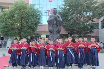 ~ 童蒙之学,始于衣冠;先正衣冠,后明事理。育才学校的老师们笑容灿烂,俯身为孩子们端正衣领。一年级的班主任们为孩子们击鼓三声。这咚咚鼓声,承载着对孩子们诚挚的祝福,美好的期待和坚定的信心。行拜师礼,是一种仪式。一拜孔子,博学之礼,立身楷模。二拜老师,拜师礼成即确立师徒名分,师傅担当教好徒弟的责任,而徒弟也要尽尊重师父的本分。“启智”意为开启智慧,张校长为孩子们点上一颗颗红“智”,它寓意着唤醒,寓意着激励。