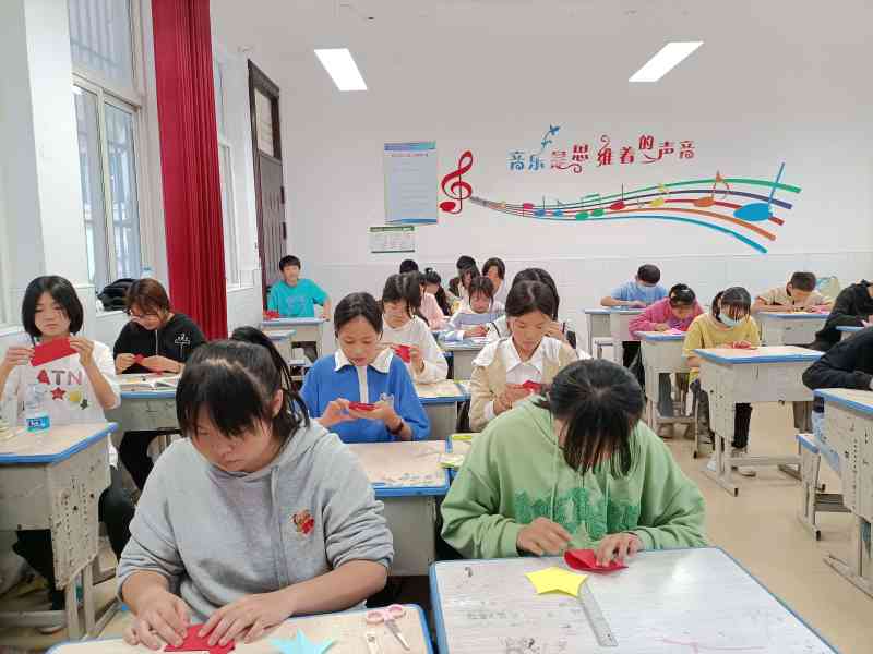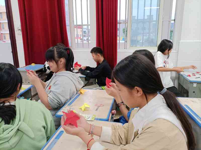 ~ 剪纸王老师向同学们简单介绍了中国传统文化剪纸的由来、产生和发展。“一份剪纸一份情,一幅作品一片爱”,接着向同学们讲述了剪红星的意义,然后教同学们如何折叠、划线,根据图形剪出正确规整的五角星。同学们热情高涨,很快掌握了简单的剪纸技巧,认真折叠,拿起剪刀,用心剪出颗颗红星,表达对祖国母亲生日的祝福,祝福祖国繁荣昌盛。(供稿:王爱侠 初审:王爱侠 审核:葛明珠 审签:张中保)