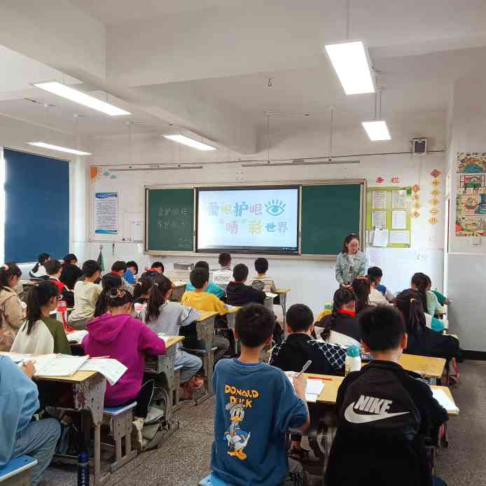 会。老师们向学生讲解近视的形成原理及预防方法,产生近视给生活带来的诸多不便,教育学生要认真做好眼保健操,科学用眼,合理使用电子产品。老师们还亲自教学生唱爱护眼睛的歌曲《光明的未来》。