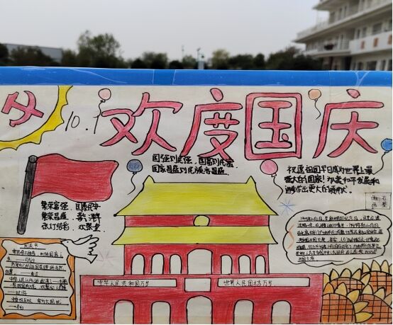 在校长代锋利的精心组织下,工会牵头,学生、老师们积极、踊跃地参与到整个活动中,各显所能,充分发挥出自己的才华和想象力,用色彩鲜艳的画,遒劲有力的书法作品,将自己对祖国的热爱通过图画、书法的形式表现了出来。