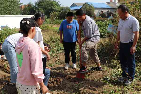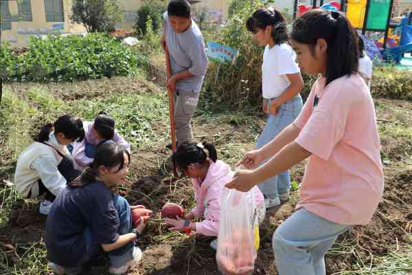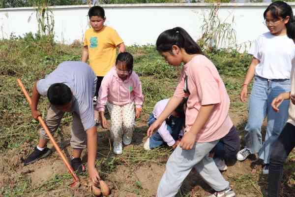 活动中,在老师现场讲解示范后,同学们便迫不及待地忙碌起来。他们热情高涨,干劲十足。挖的挖,拾的拾,运输的运输,在欢声笑语中,一会的功夫同学们就把红薯收获完了。看着收获的红薯,同学们虽然累点,但都非常高兴。丰收的喜悦写在每个人的脸上。