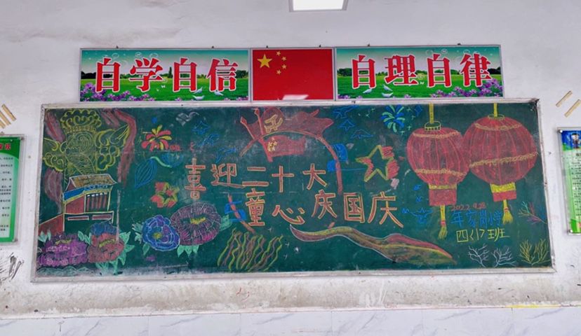 ~ 该校学生于国旗下演讲,普及“国庆节”升国旗的意义,吹响祖国73周年华诞的新号角!充分挖掘红色教育资源,开展阅读红色书籍、传唱红色歌曲、以及一版版主题鲜明、色彩鲜艳、构思新颖、图文并茂,集绘画书法为一体的黑板报,制作精美贺卡等形式多样的庆祝活动。