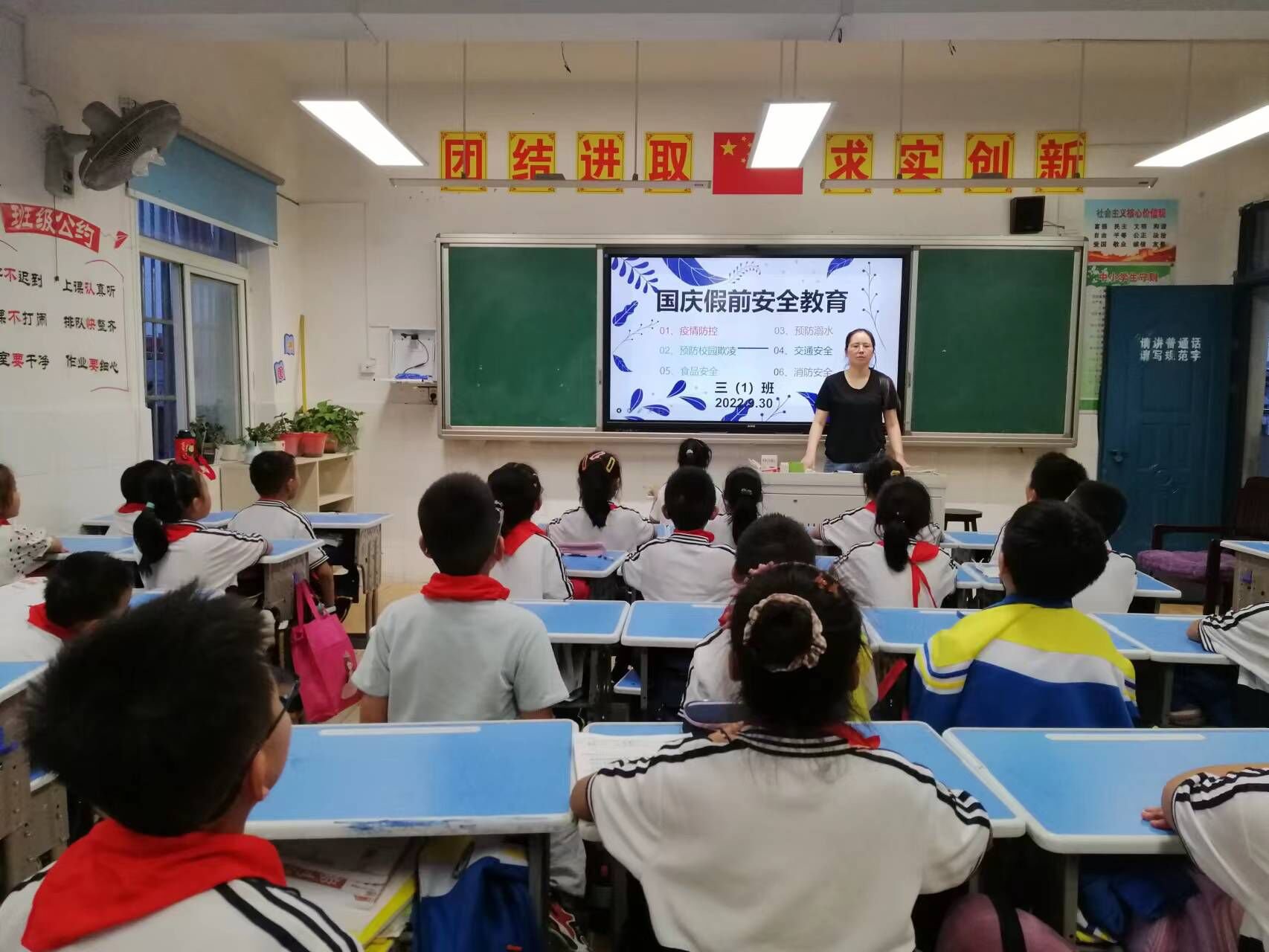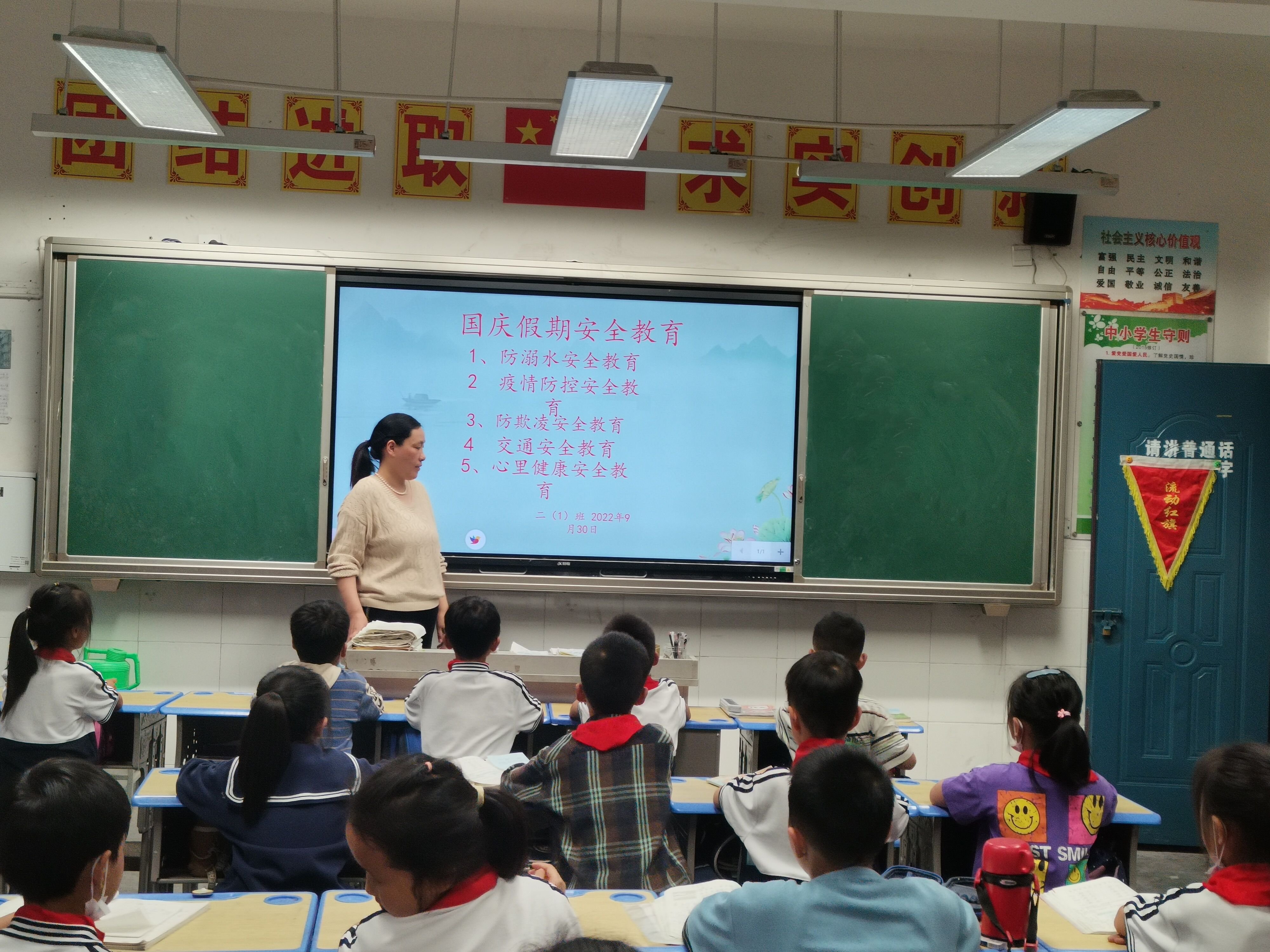 ~ 在学校安全办的组织下,在各班级利用周五下午最后一节课召开了国庆假期安全教育主题班会。 班会上,各班主任从疫情防控、防溺水、防电信诈骗、放欺凌、交通消防安全、食品卫生等方面对学生进行安全知识教育。帮助学生牢固树立安全意识,培养学生安全技能。