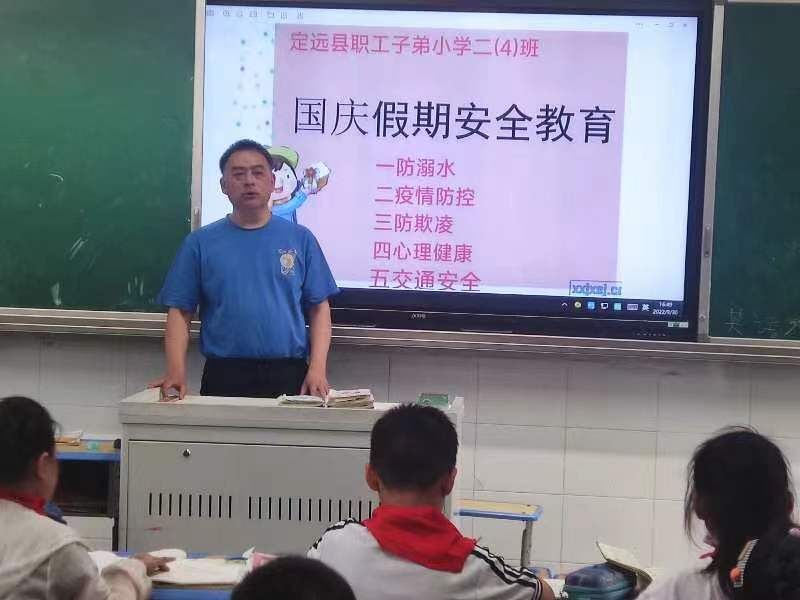 ~ 为增强学生国庆节假期的安全防范意识,提高安全防范能力,9月30日下午,定远县职工子弟小学开展了国庆假期教育活动。