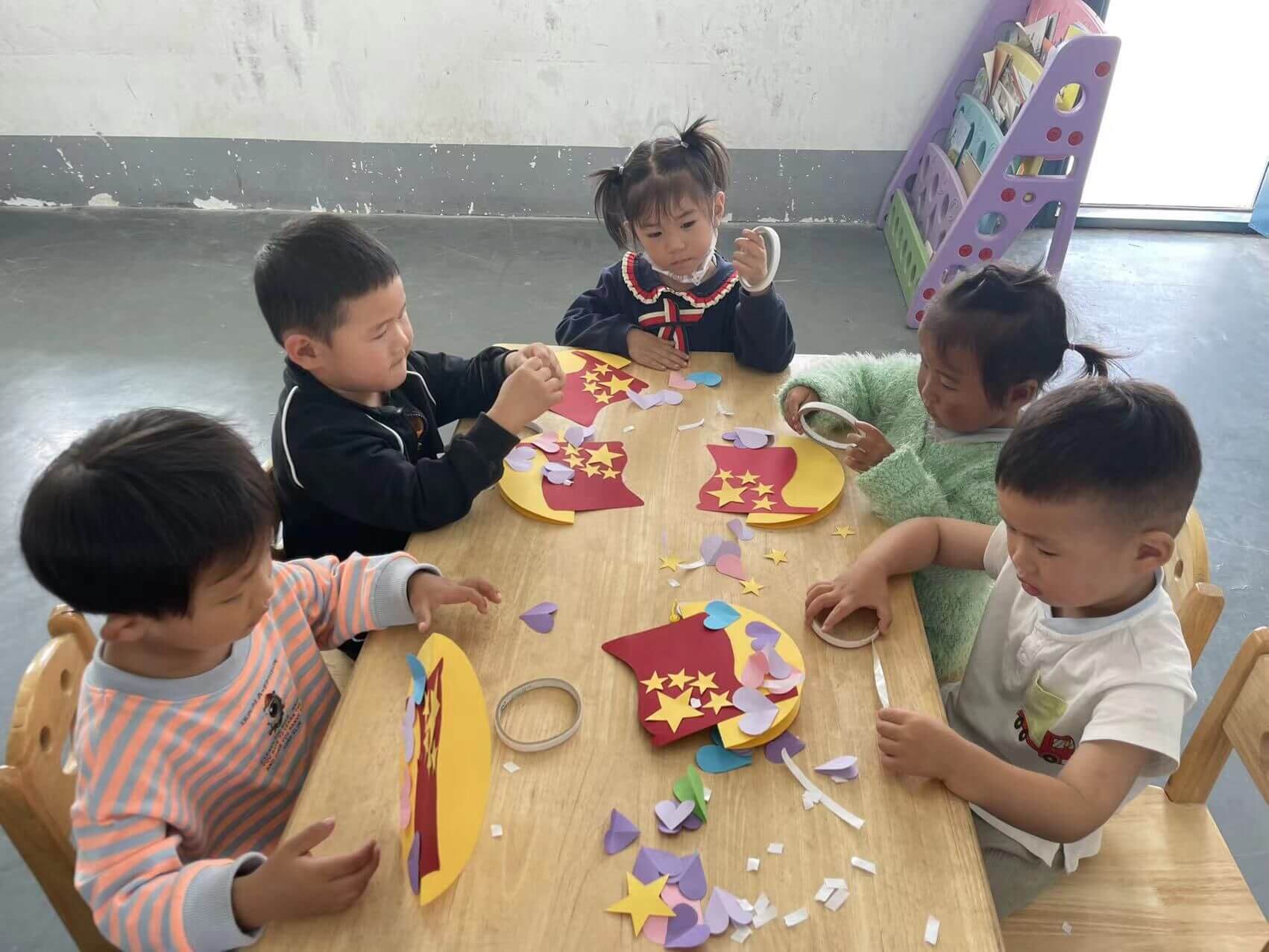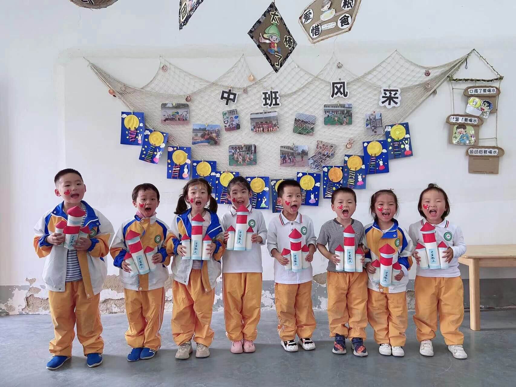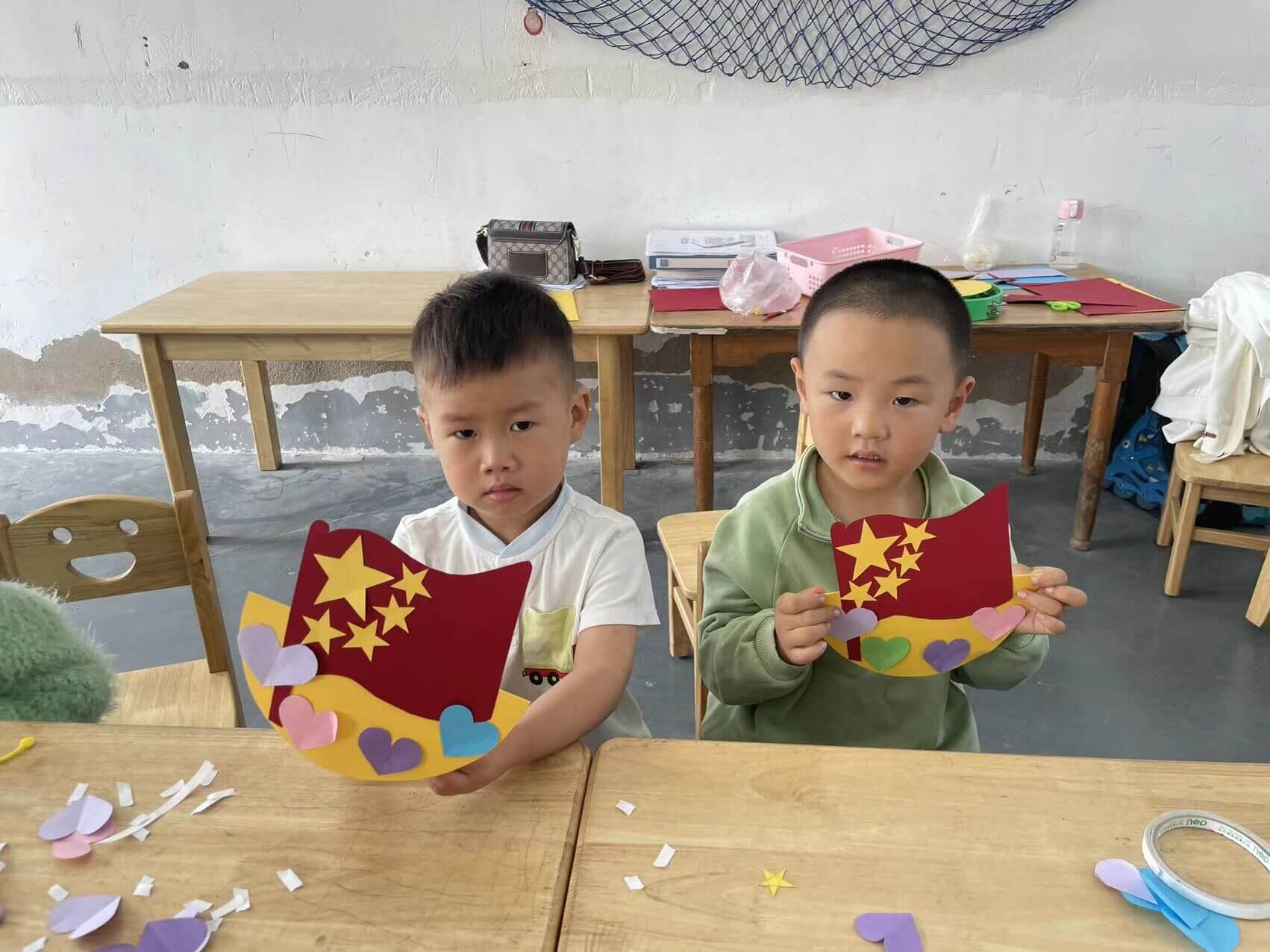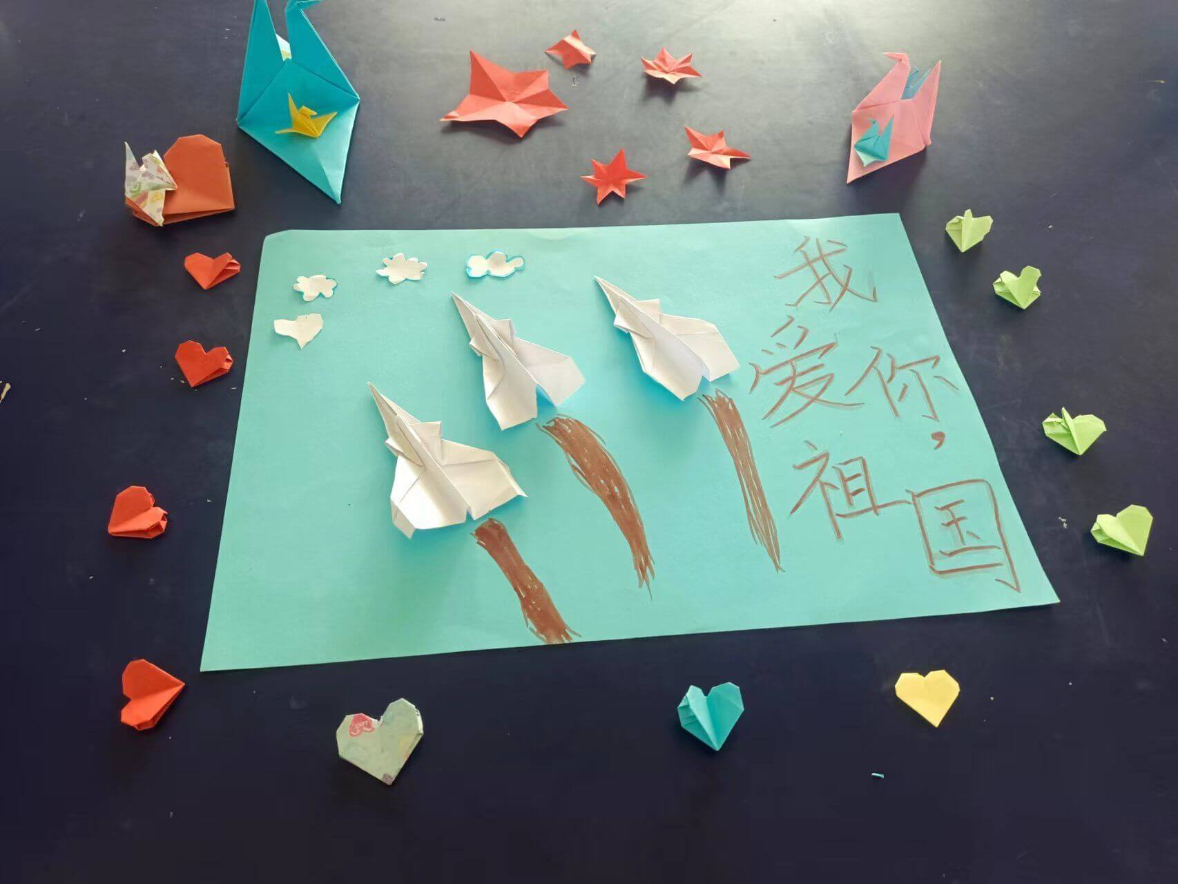 ~ 9月30日上午,该校就利用电子屏及展板营造浓厚、祥和的节日氛围。该校附属幼儿园的老师们向孩子们讲解国旗的含义及由来,让孩子们对国庆节有了深刻的认识。接着在老师们的帮助下,孩子们动手制作国旗及火箭模型。孩子们在自己动手的过程中加深了对国旗的理解,激发了孩子对科学技术的好奇心。