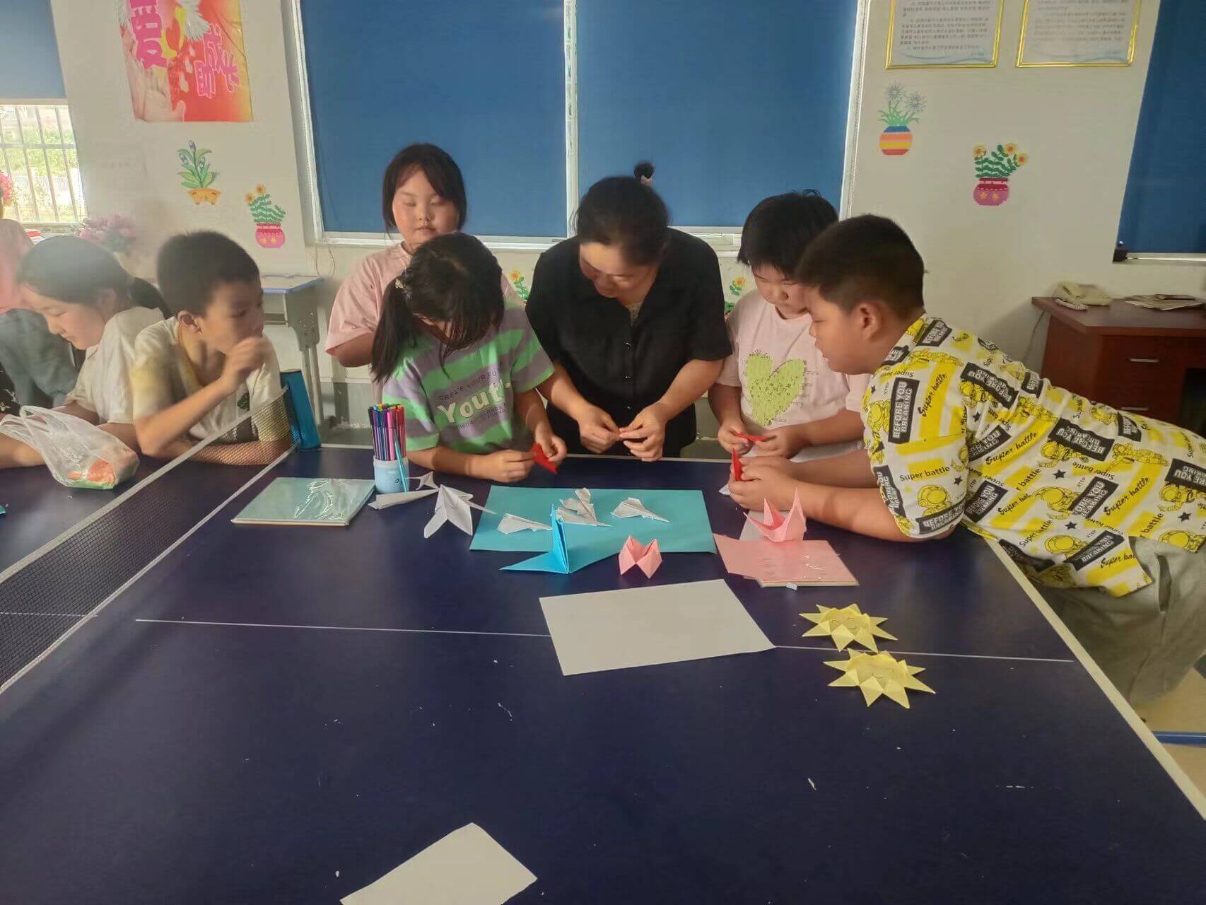 ~ 留守儿童之家的爱心妈妈郭庆芳,带领留守儿童们学习“学习强国”APP。通过学习了解祖国如今的繁盛是一代又一代人努力的结果,以此激励孩子们刻苦学习,将来为建设更强大的中国奉献自己的一份力量。接着郭庆芳带领孩子们用普普通通的纸折出各种造型的飞机、战斗机,激发了孩子们对航天事业的兴趣。