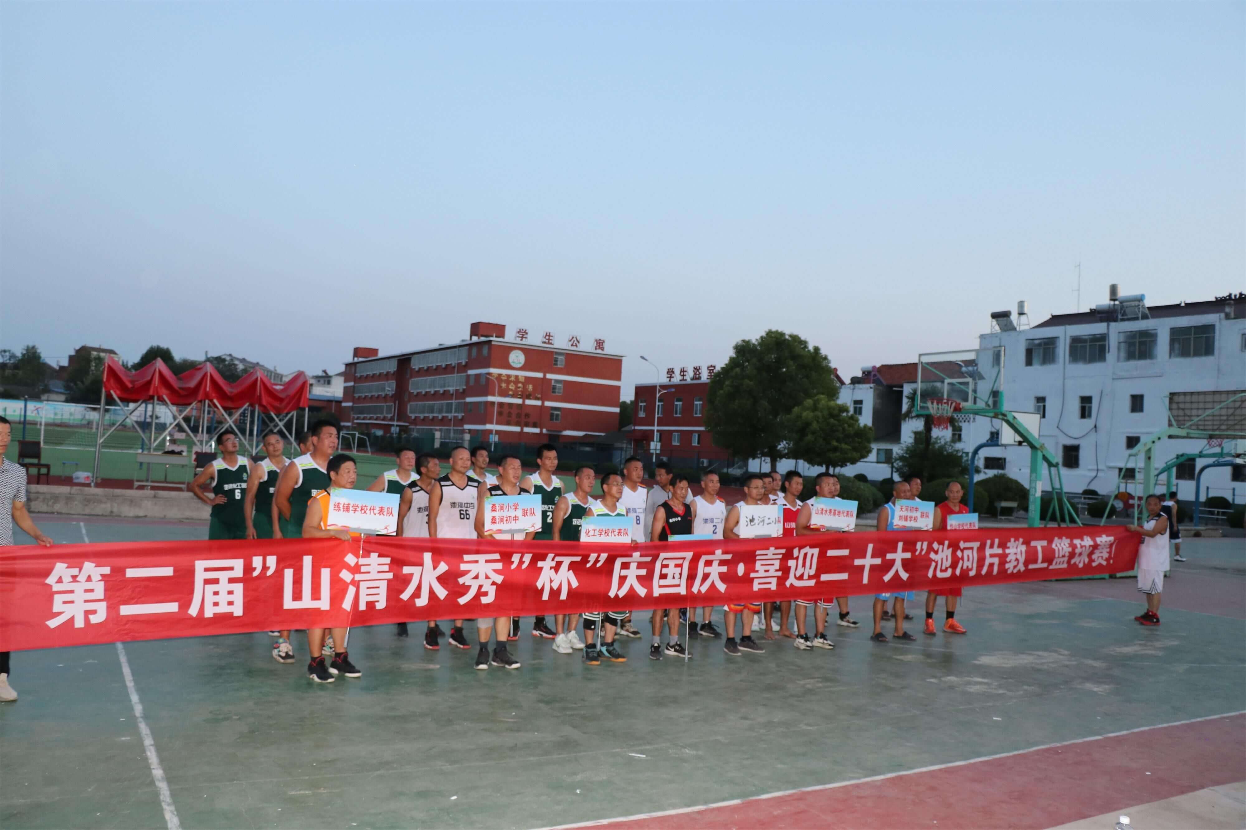 历经2天紧张而激烈的角逐,第二届“山清水秀杯” “庆国庆•喜迎二十大”池河教研片教职工篮球赛10月3日下午在池河中学正式落下帷幕。 “山清水秀”研学基地负责人黄开军、各校领队和部分参赛运动员参加了闭幕式及颁奖仪式,仪式由池河中学校长欧健海主持。