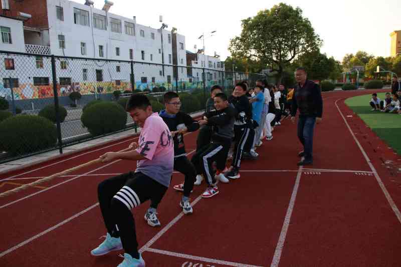 ~ 下午4:20,课后服务时间。校园内欢声笑语、激情飞扬,充满了节日的气氛,学生们在班主任引领下如潮水般地涌上比赛场地,他们精神抖擞、斗志昂扬。下午4:30,随着七、八年级分组比赛裁判长高礼虎和董世刚一响哨声,比赛开始。参赛队员涨红了脸铆足了劲拼命往后拉。班内剩余的同学自发组成啦啦队为本班队员加油助威,有的班主任激动不已,挥舞着拳头,为本班学生呐喊助威!一时间呐喊声、加油声、掌声、哨声此起彼伏,飘荡在整个池河中学上空。经过激烈的耐力、体力较量,最终:七(1)班、七(4)班和七(2)班分获七年级组一、二、三名;八(4)班、八(2)班和八(3)班分获八年级组一、二、三名。