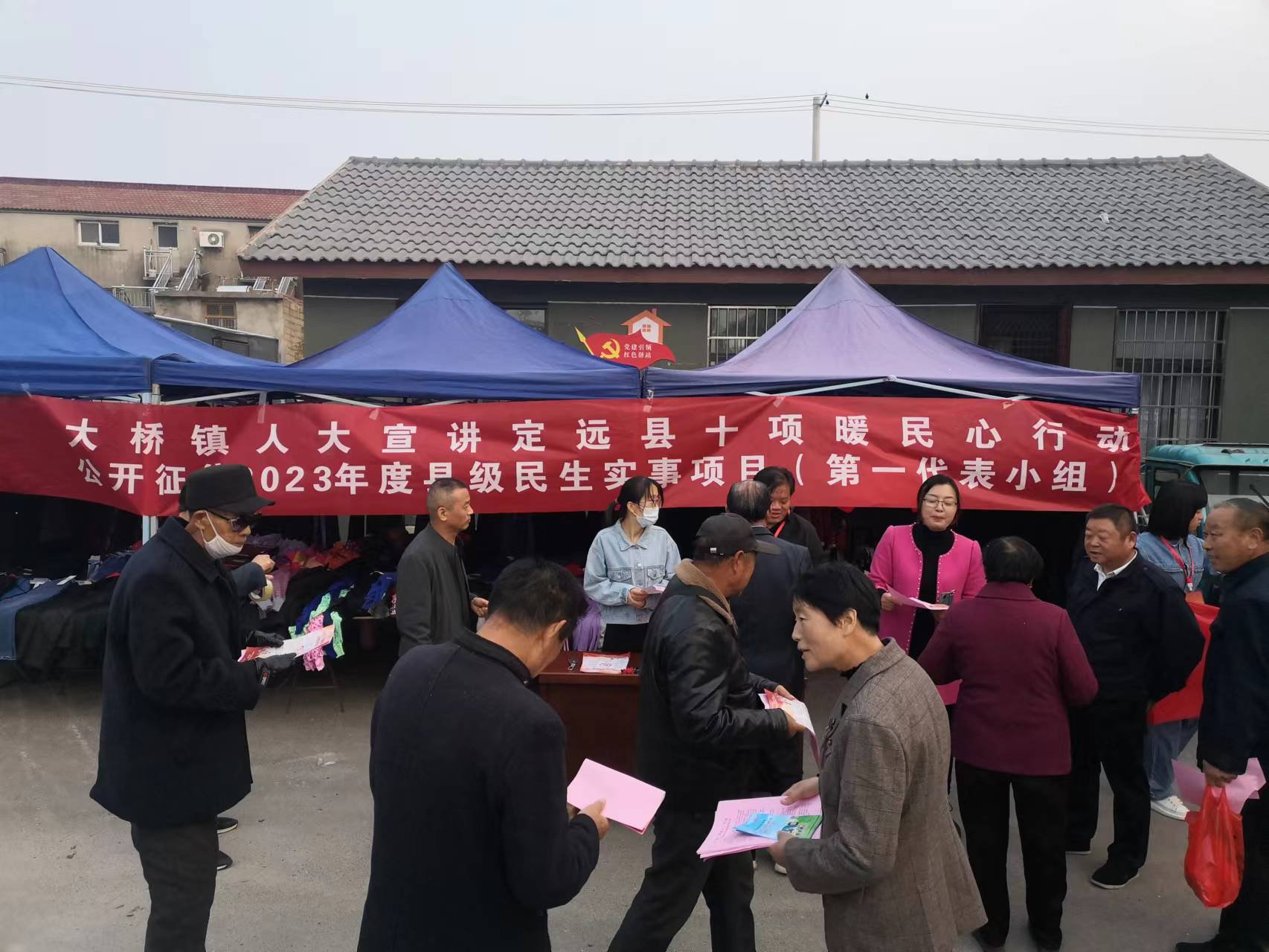 ~ 为进一步提高群众对民生工程知晓度和支持率,让“10项暖民心行动”真正温暖民心,近日,定远县大桥镇组织工作人员在农贸市场开展暖民心行动集中宣传活动,引导群众关心、支持、监督暖民心行动。镇人大第一代表小组借此契机,积极参与活动宣传。