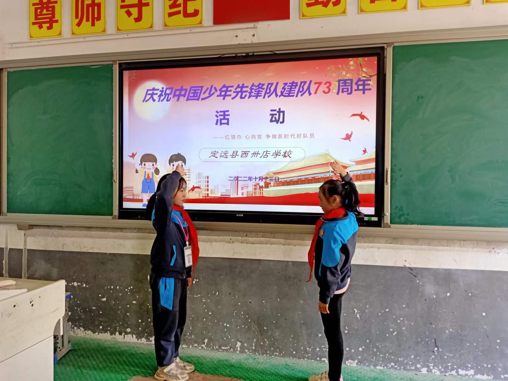 ~ 为纪念中国少年先锋队建队73周年,进一步引导青少年培育和践行社会主义核心价值观,充分展示当代青少年的精神风貌,增强少先队员的光荣感和自豪感,定远县西卅店学校少先队组织相继开展 “献礼党的二十大,争做好队员”主题实践活动。