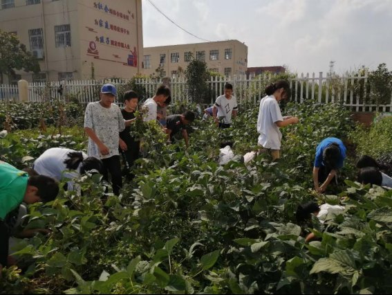 为提高同学们的劳动积极性,学校将实践基地以班级为单位划分成若干块,各班级结合班级实际栽种不同的蔬菜作物。拿到地后,同学们乐开了花,在劳动实践课时间就来到基地里挖地、施肥、播种、浇水、除草,精心呵护自己种下的希望。随着时间的推移,当亲眼看到自己种的花生、大豆、大蒜、豆角茁壮成长并结出果实后,师生们脸上都洋溢着满意的笑容。到了秋收季节,同学们在老师的指导下,分工合作,收获了一颗颗饱满的果实。同学在体验劳动快乐的同时,也学习到了采摘和种植的技术,如在挖花生时铁锹要离根部稍远点,否则容易将花生弄破,种大蒜时要将蒜竖立起来摆放等。