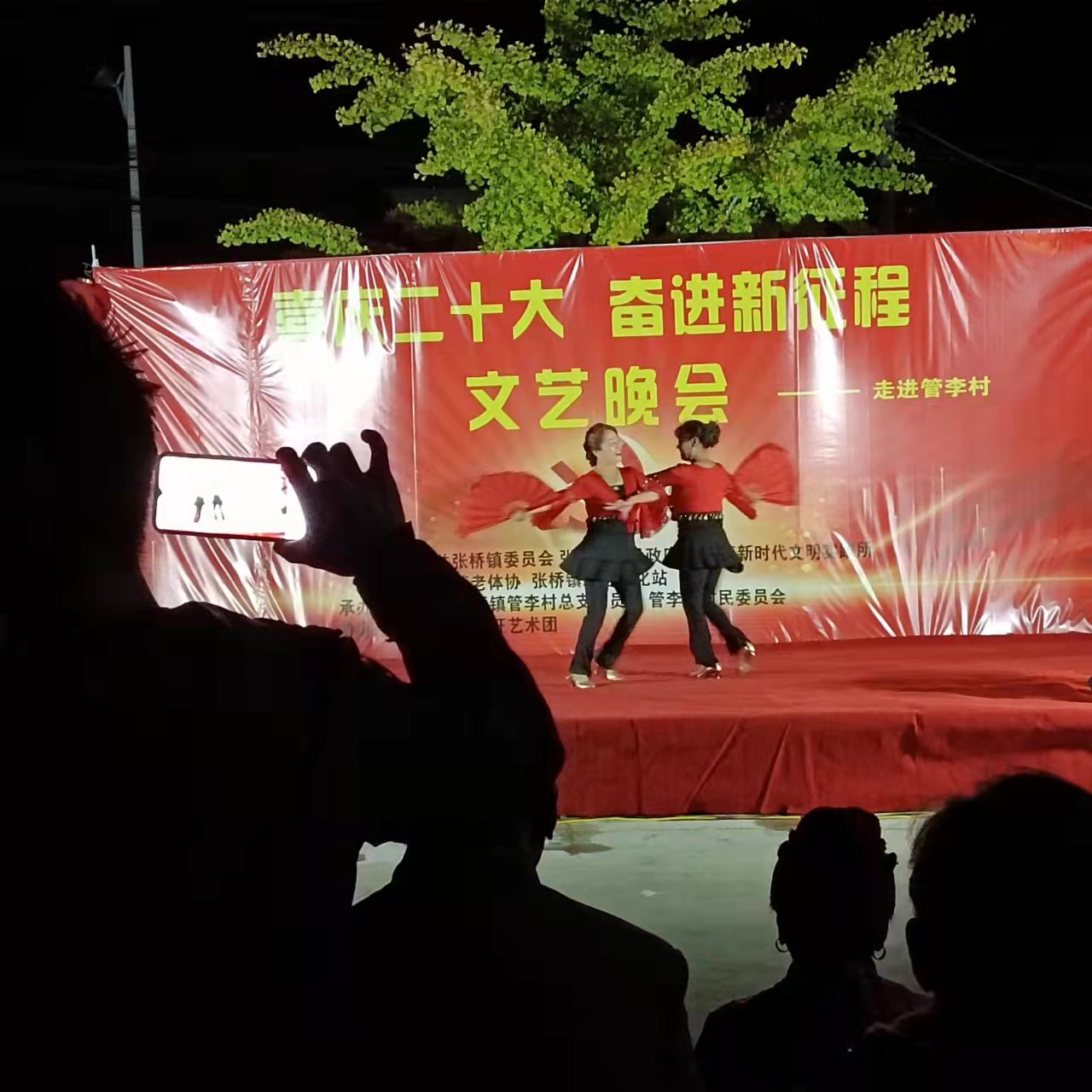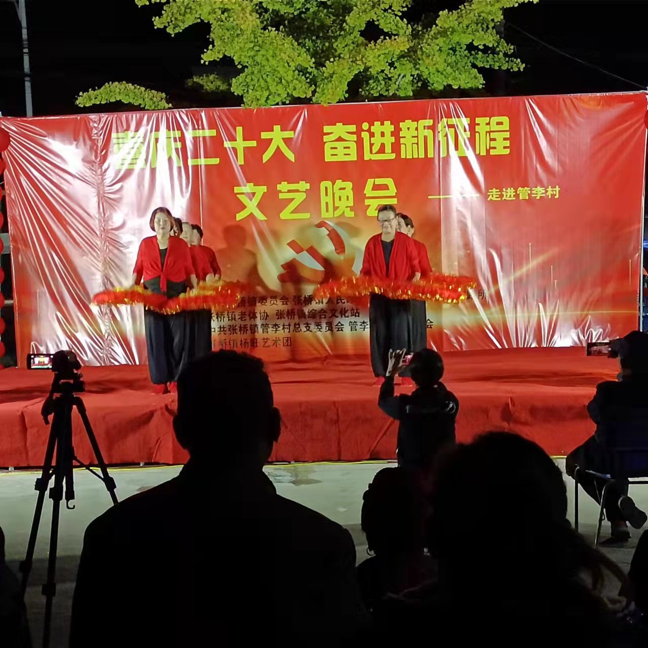~ 10月20日晚,定远县张桥镇管李村文化广场,锣鼓喧天、歌声嘹亮,由张桥镇文化站主办,喜庆党的二十大胜利召开文艺演出正在举办。