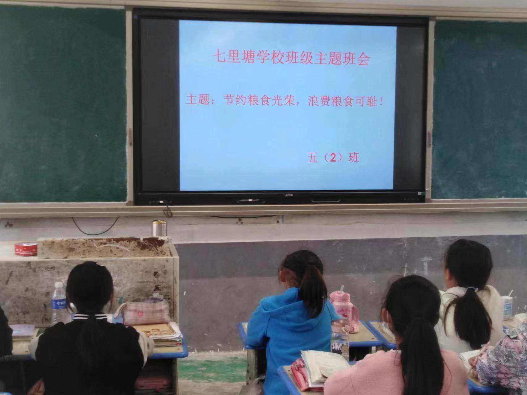 10月16日世界粮食日暨全国粮食安全宣传周,为了让学生们了解粮食的重要性,懂得珍惜粮食,节约粮食,定远县七里塘学校开展了“节约粮食光荣,浪费粮食可耻!”主题班会活动。