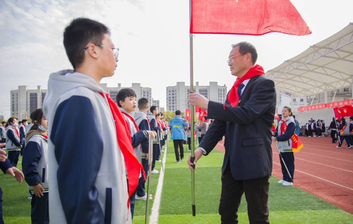 ~ 10月25日,定远县第一初中教育集团双塘中学校区在校体育场开展了以“大领巾、大责任、大志向”为主题的红领巾换戴仪式。团县委书记武赟,团县委副书记张杨,县委教体工委委员、工会主席姜杨,县少先队总辅导员雍敏以及集团党支部书记、校长张书清等领导出席了本次活动。
