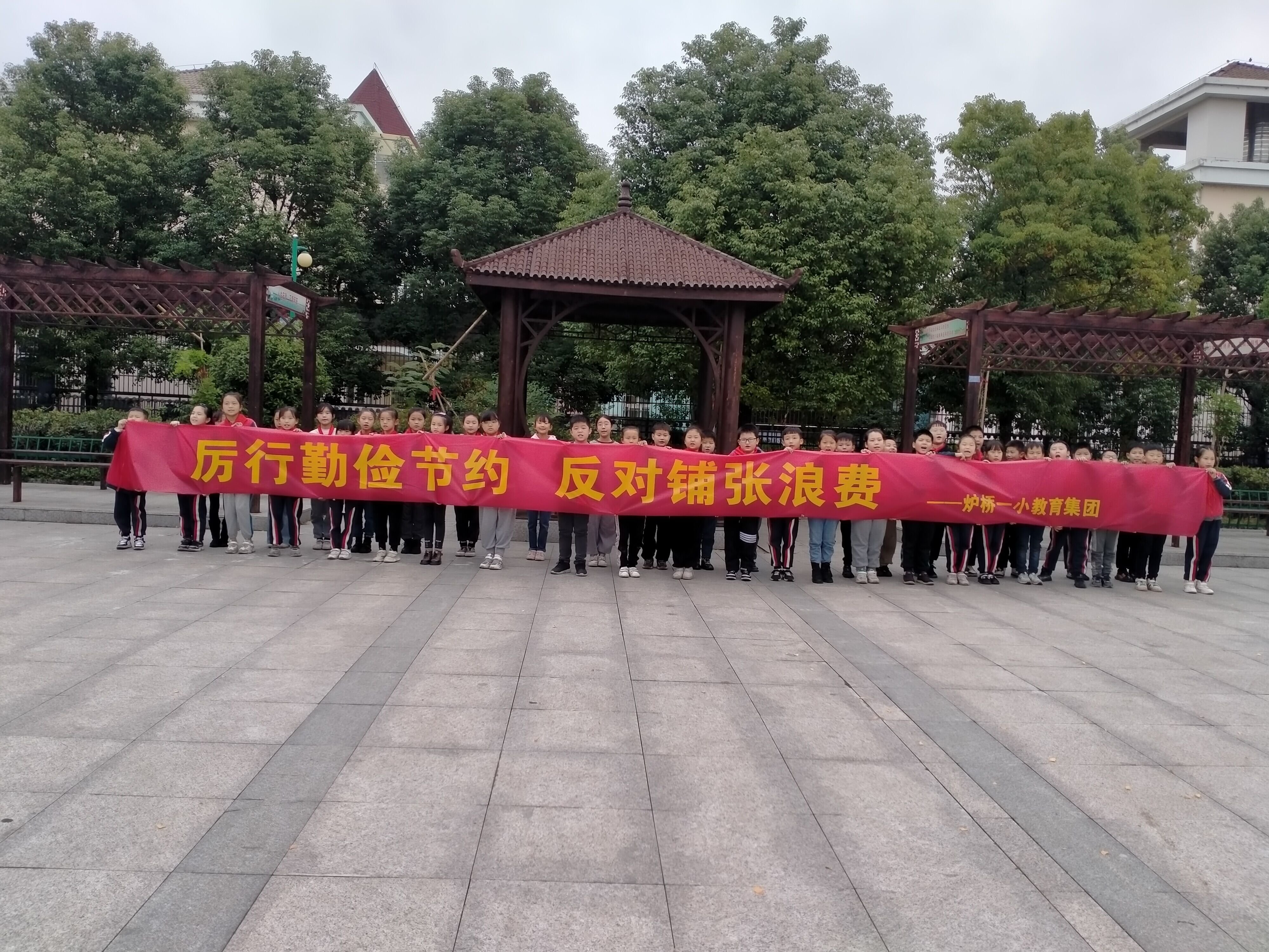 ~ 本次活动由该校少先大队和政教处共同组织实施,通过悬挂横幅、国旗下讲话、发放炉桥一小“勤俭节约”倡议书、各班签署“勤俭节约”承诺书等方式进行积极宣传。各班召开了主题为“勤俭节约 从我做起”的主题班会。班主任向同学们介绍了“世界勤俭日”的具体日期、由来、设立的意义,同时号召同学们要从身边的小事做起,使勤俭节约成为一种时尚、一种习惯、一种精神。