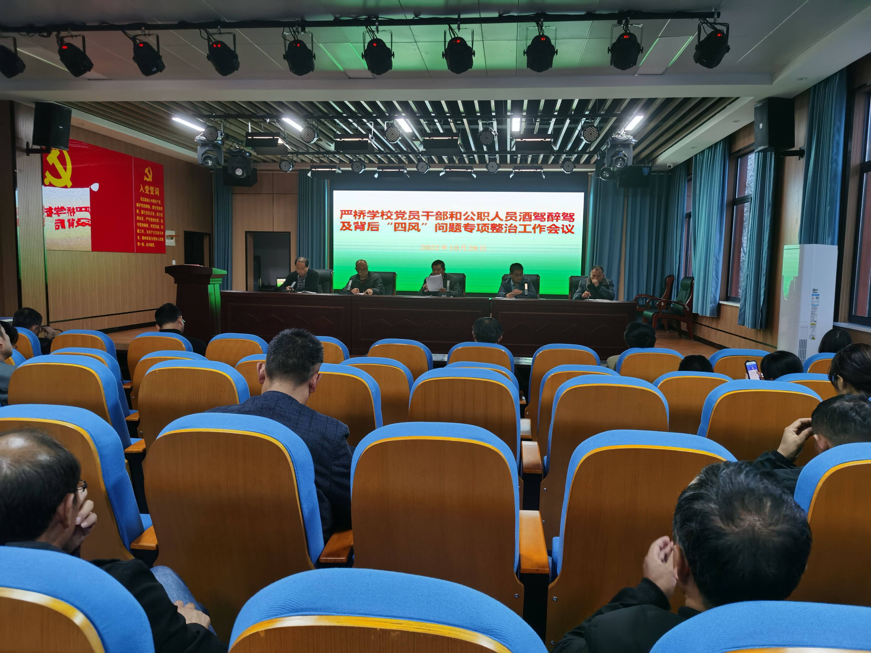 为强化警示教育,严明纪律要求,切实增强全体教职工的纪律意识和守法意识,坚决遏制酒驾醉驾等违纪违法行为的发生,10月28日下午定远县,严桥学校组织全体教职员工召开了酒驾醉驾及其背后“四风”问题专项整治工作会议。校党支部书记、校长李树先主持会议并传达局专项会议精神。