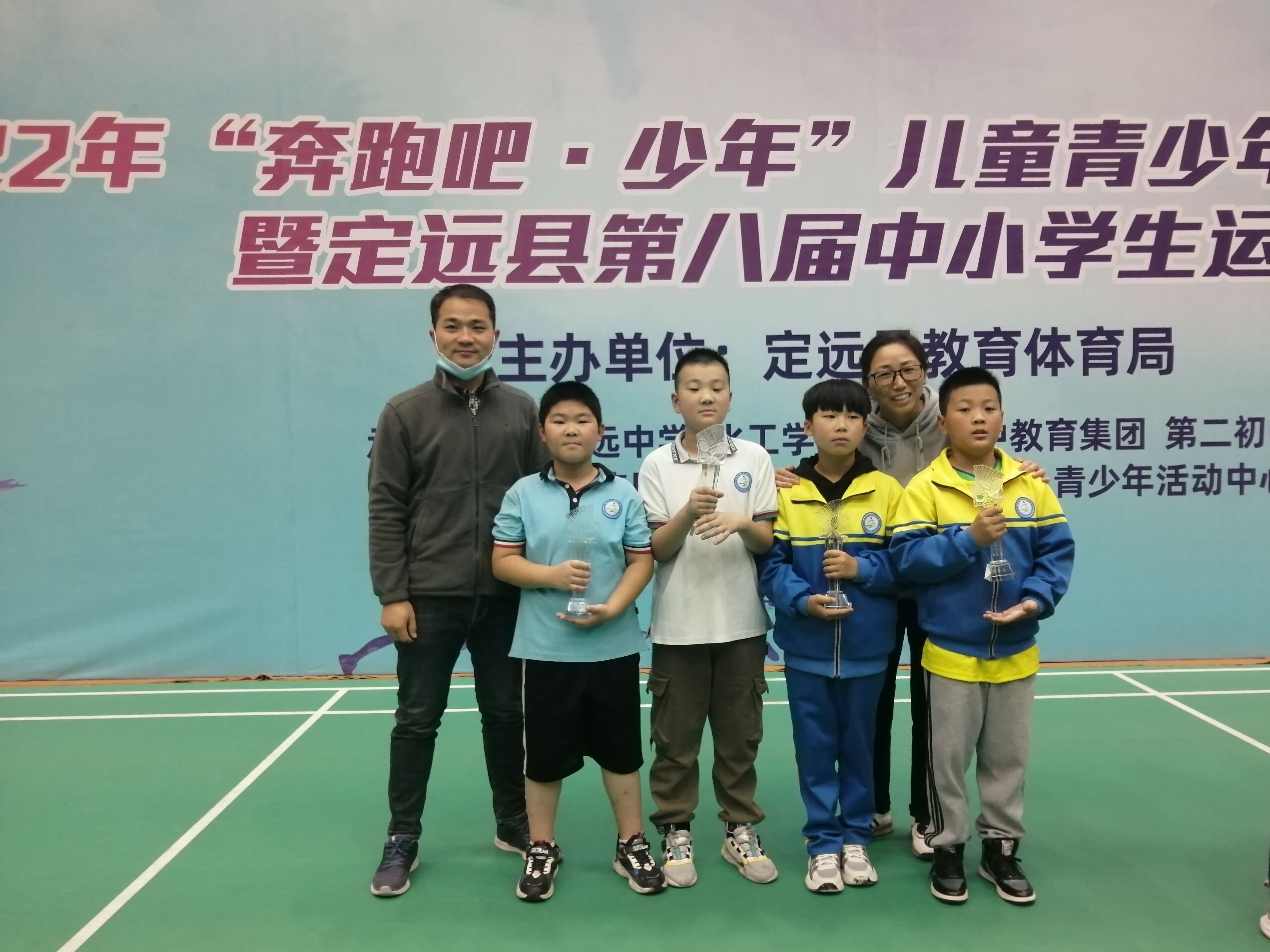 ~ 10月29-30日,2022年“奔跑吧•少年”儿童青少年主题健身活动暨定远县第八届中小学生运动会羽毛球比赛在县体育中心举行,定远县民族小学队获得了女子团体二等奖,男子团体三等奖。其中,肖梦蕊和王德斌同学在单打比赛的角逐中分别获得三等奖。