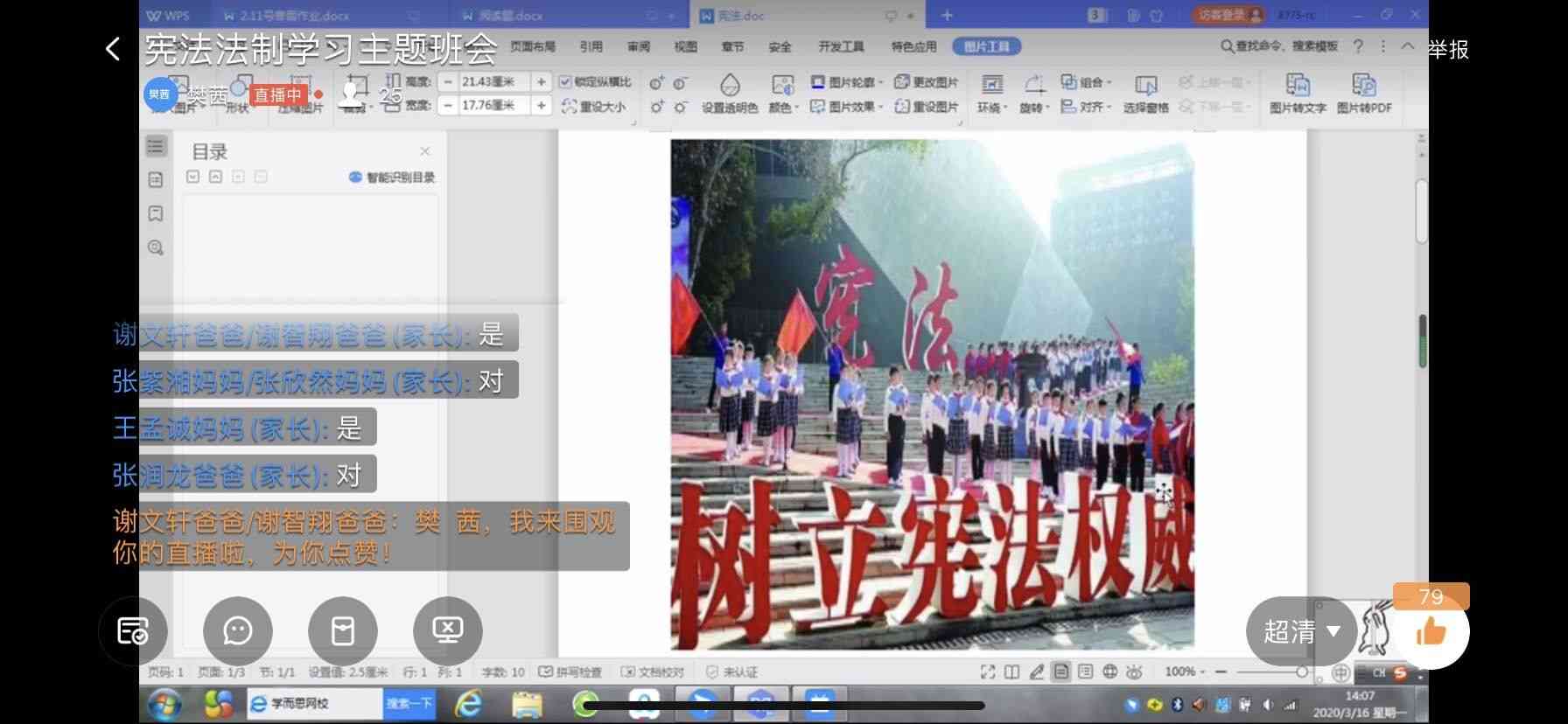 受新冠病毒疫情影响,学校还未开学,但这也没能影响定远县年家岗小学全体师生学习宪法知识的热情。全体教师在家学习宪法知识,班主任通过直播的形式,进行了“弘扬宪法精神 树立宪法权威”为主题的宣传活动,营造了浓厚的宪法学习氛围。(魏静静)