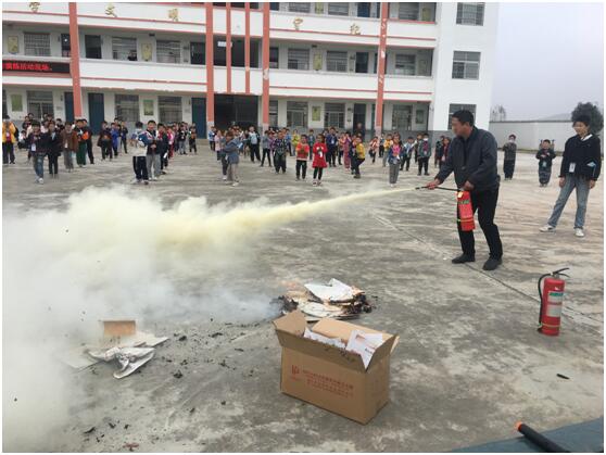 ~ 为了实施好这次演练,学校安全办制定了详细的消防逃生演练方案,对各班逃生路线及各部门的职责都作出了明确的规定。下午2点10分,警报声拉响,各班班主任迅速组织学生排队疏散,其他老师们也在第一时间赶到自己的任务点配合疏散演练。同学们在老师的指挥下,弯腰,低姿,用湿毛巾捂住口鼻,沿着指定路线快速有序撤离,来到操场安全地带。随后学校安全办又对 “灭火器的认识和使用”,给学生进行了培训,并指导学生现场演习,让大家又多掌握了一项安全自救技能。