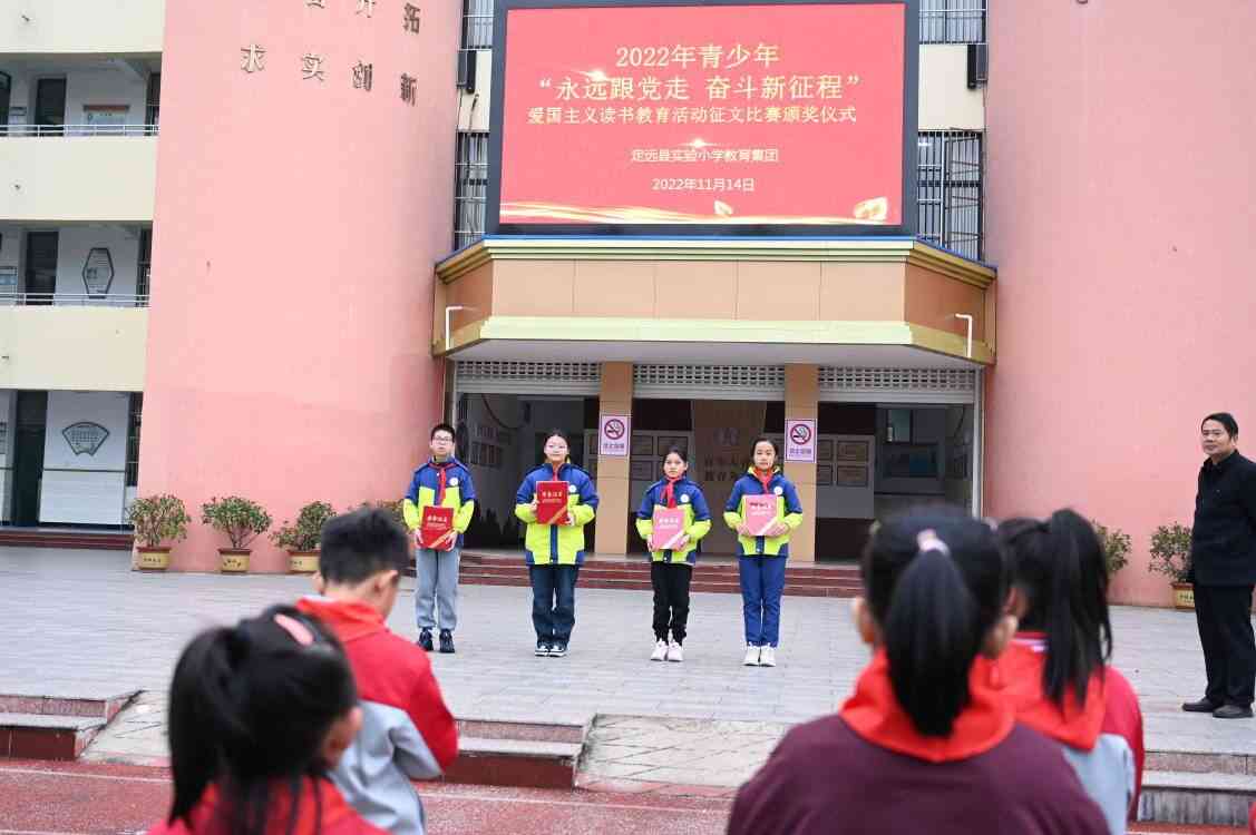 ~ 11月14日上午,定远县实验小学教育集团举行颁奖仪式,为在2022年定远县青少年“永远跟党走 奋斗新征程”爱国主义读书教育活动小学生读书征文比赛中获奖选手进行颁奖。颁奖仪式由曲阳路校区负责人、集团学校副校长武文松主持。