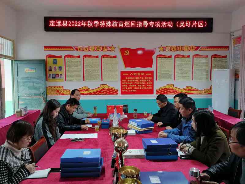 ~ 11月18日上午,定远县特殊教育巡回指导小组走进吴圩小学,对吴圩片八所学校的特殊教育工作进行检查指导,旨在促进各校不断提升送教上门、随班就读工作质量水平。定远县特殊教育学校督导专家范润生、张文以及吴圩片八所学校的相关负责人参加了此次活动。