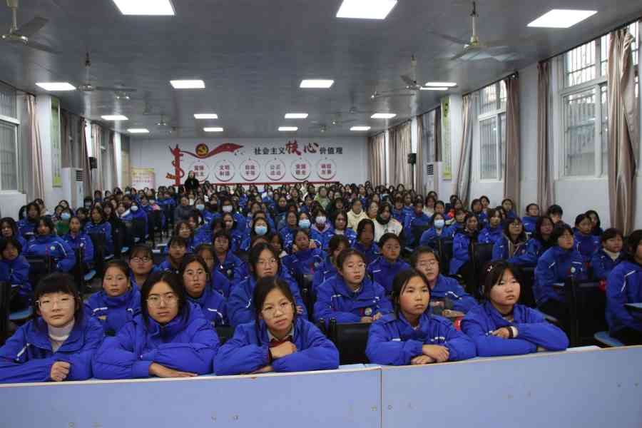 ~ 为引导寄宿女生正确对待青春期生理及心理变化,避免青春期所产生的矛盾与困惑对学习和生活造成不良影响,使寄宿生女生平安、快乐地度过特殊时期, 2022年12月1日中午,定远县池河中学在校大会议室组织举办了主题为《守护花蕾——与女生谈青春期成长》心理健康教育知识讲座。