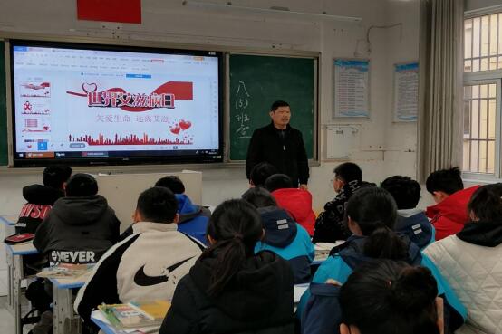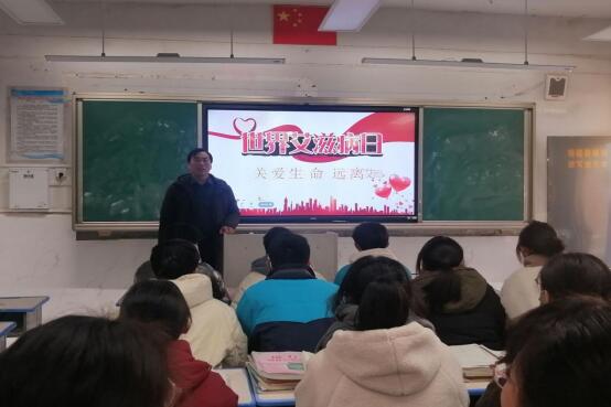 ~ 学校通过召开预防“艾滋病”专题会,开展防艾专题讲座,组织学生观看防艾科普视频、发放防艾宣传手册、悬挂宣传横幅、张贴抗艾宣传海报、召开主题班会等活动,营造浓厚的防艾宣传氛围,提高学生预防艾滋病知识水平及防范意识。班会课上,各班主任老师通过播放PPT、短视频等,重点围绕“艾滋病的症状、传播途径、预防措施”等方面进行解读,结合日常生活中的实例,帮助学生全面掌握防艾知识,提高健康预防意识。