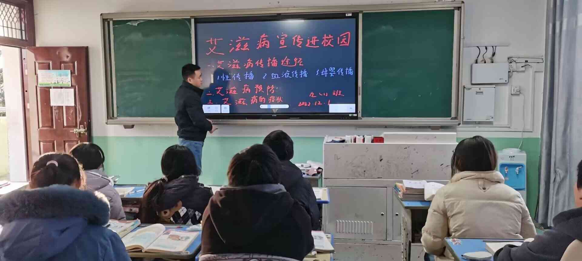 活动上,各班班主任通过播放短视频、PPT等方式,重点围绕“艾滋病的症状、传播途径、预防措施”等方面进行解读,并结合生活中的实例,帮助学生全面掌握防艾知识,提高健康预防知识。