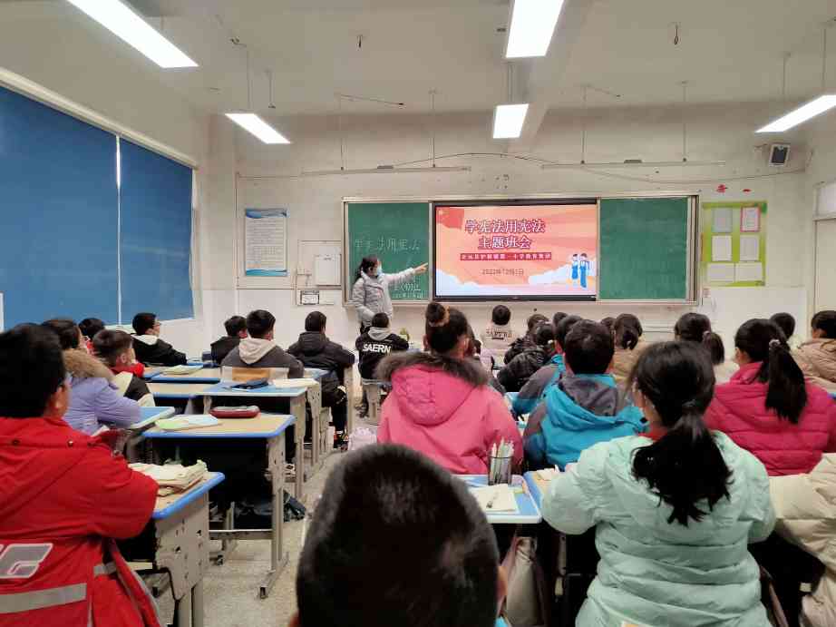 ~ 活动中,该校通过电子显示屏、悬挂横幅、微信群、黑板报、学校公众号等方式营造了良好的宣传氛围。12月1日,各班召开了“弘扬宪法精神 共创美好生活”主题班会。老师为学生普及宪法相关知识,培养学生守法意识。该校少先大队组织高年级学生参与“宪法知识竞赛”活动,让学生通过试题竞赛,对我国宪法有更全面的认识。12月2日,炉桥一小邀请法制副校长为学生作了“学宪法 讲宪法”普法知识专题讲座,让学生进一步了解宪法、认识知法懂法的重要性。