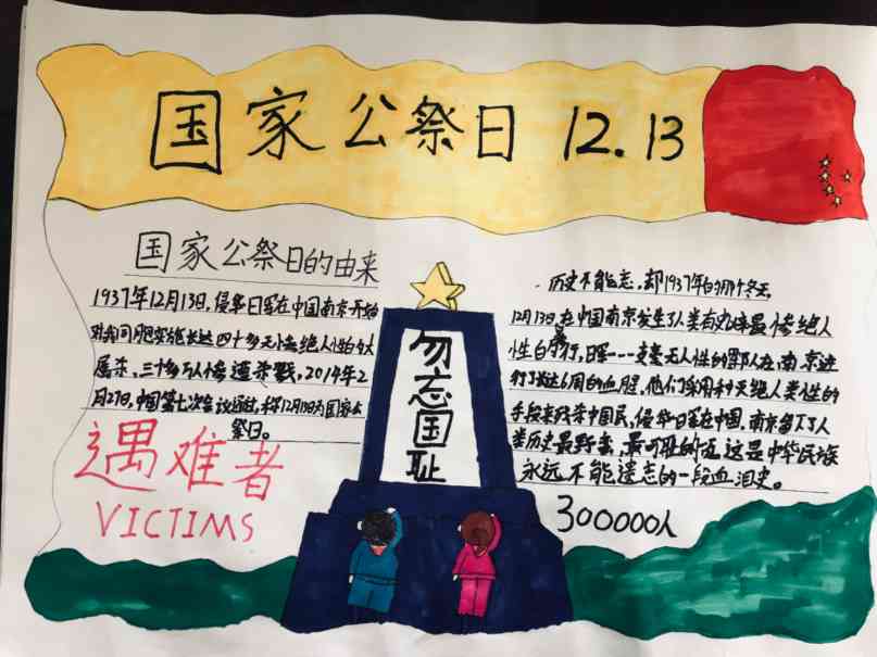 本次活动要求全体师生“勿忘国耻,爱我中华”,用实际行动来捍卫祖国的尊严,要求各班级利用班队课、信息技术课组织学生收看国家公祭日相关视频,并进行在线公祭,让孩子们接受浓浓的爱国主义教育。同时,学校少先队组织开展手抄报评比活动,鼓励越来越多的学生参与其中,从而营造革命传统教育氛围,让学生了解国家公祭日的时间、意义,引导少年儿童树立和培育正确的理想信念,弘扬民族精神,增进爱国情感。(图文: 葛晓雪 初审: 施益军 审核: 吴勇 审签: 张可庭)