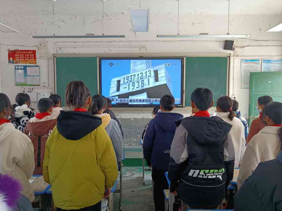 ~ 在班会课上,各班组织学生进行了集体默哀,向抗日英雄致敬。随后班主任讲解了“国家公祭日”设立的由来和意义,和学生们一同回顾那段灰暗的历史,警醒学生们谨记南京大屠杀给我们带来的伤痛,牢记历史、勿忘国耻。