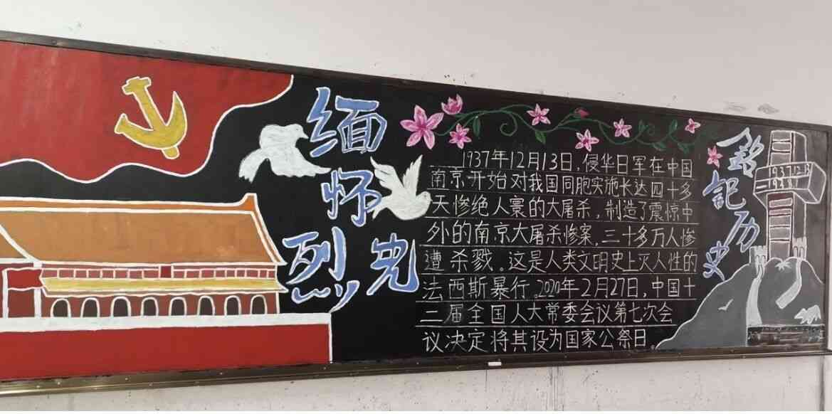 上午9点半,全校师生齐聚操场,听着学生代表在国旗下的发言,回味着这段悲痛的历史。随后各班班主任召开主题班会,详细讲述了“国家公祭日”的惨痛历史,引导学生们勿忘历史,勿忘国耻,珍惜今天的和平生活。据悉,该校还通过电子显示屏、黑板报展示、手抄报比赛等多种形式广泛宣传了“国家公祭日”相关内容,引导学生守护那些“不能忘却的记忆”。