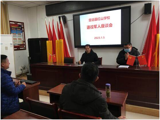 ~ 2023年1月5日,定远县红山学校召开“永葆军人本色,建功教育岗位”退役军人教师座谈会。会议由副校长宋照东主持,退役军人教师和几位教师代表参加了座谈会。