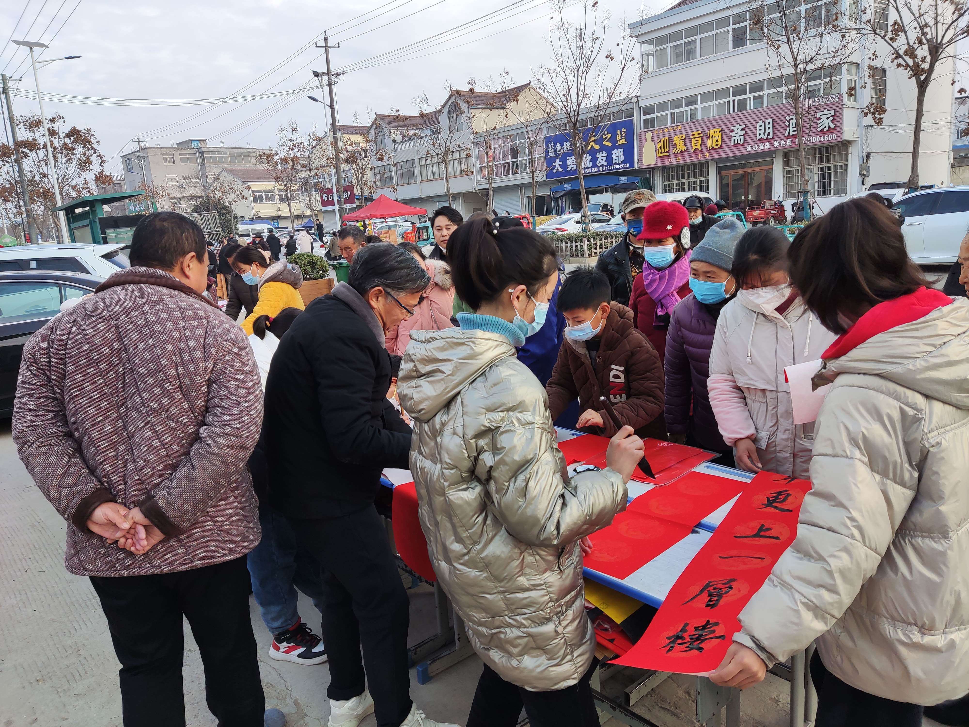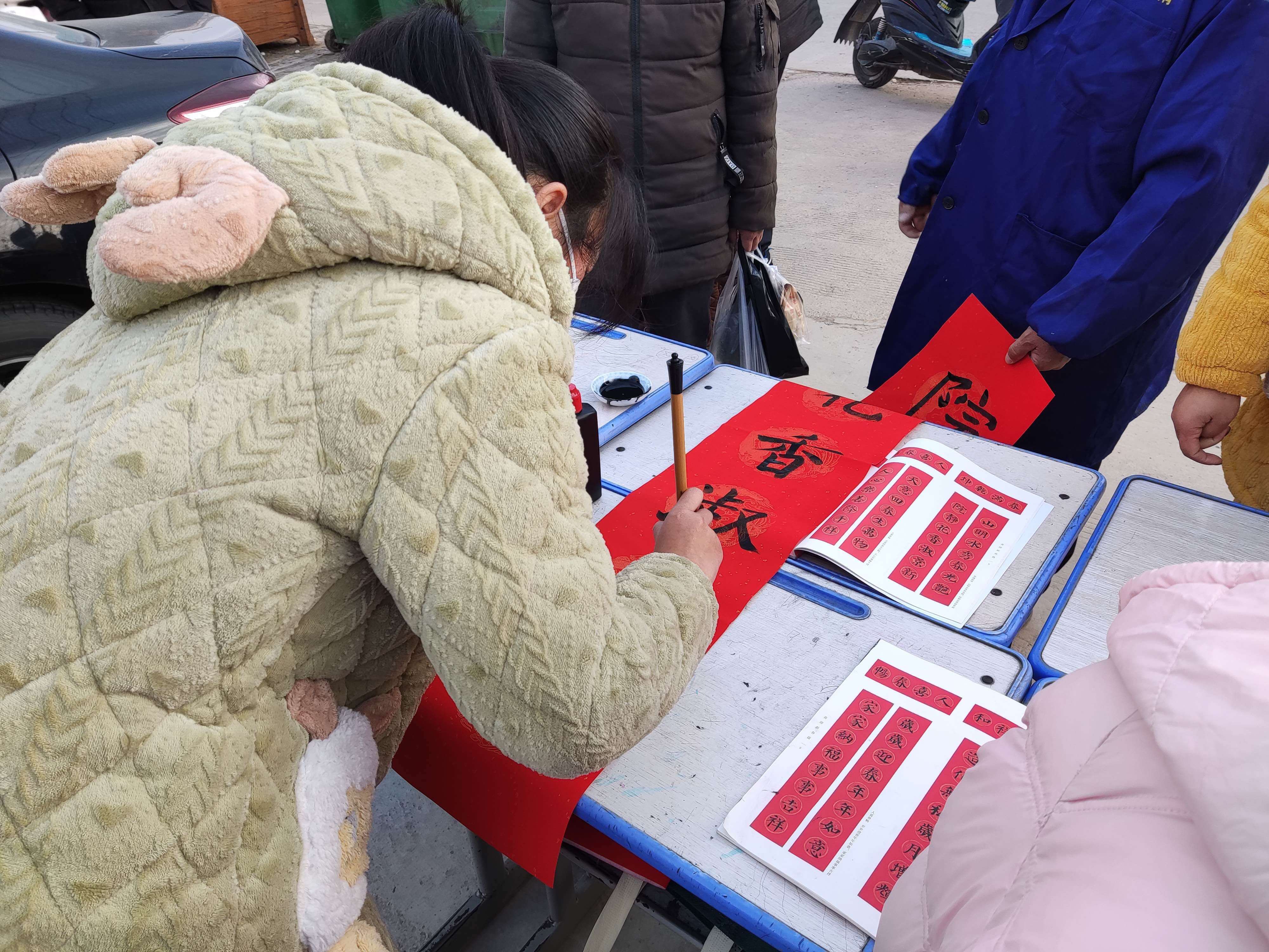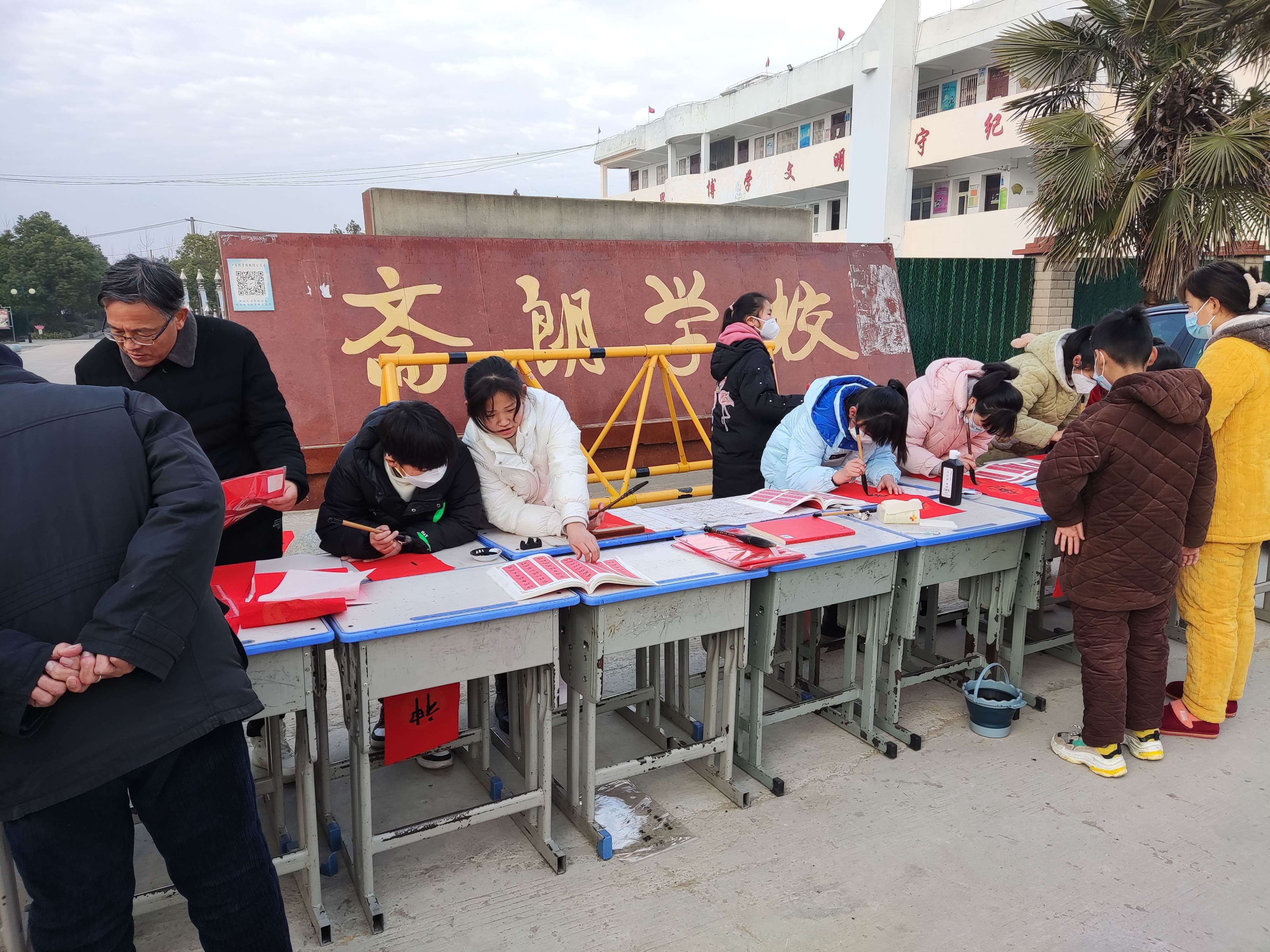 无联不成春,有联春更浓。为弘扬中国优秀传统文化,营造欢乐祥和的新年氛围,2023年1月12日上午,定远县斋朗学校组织书法兴趣班师生在校门口开展“我们的节日”写春联、送温暖活动。