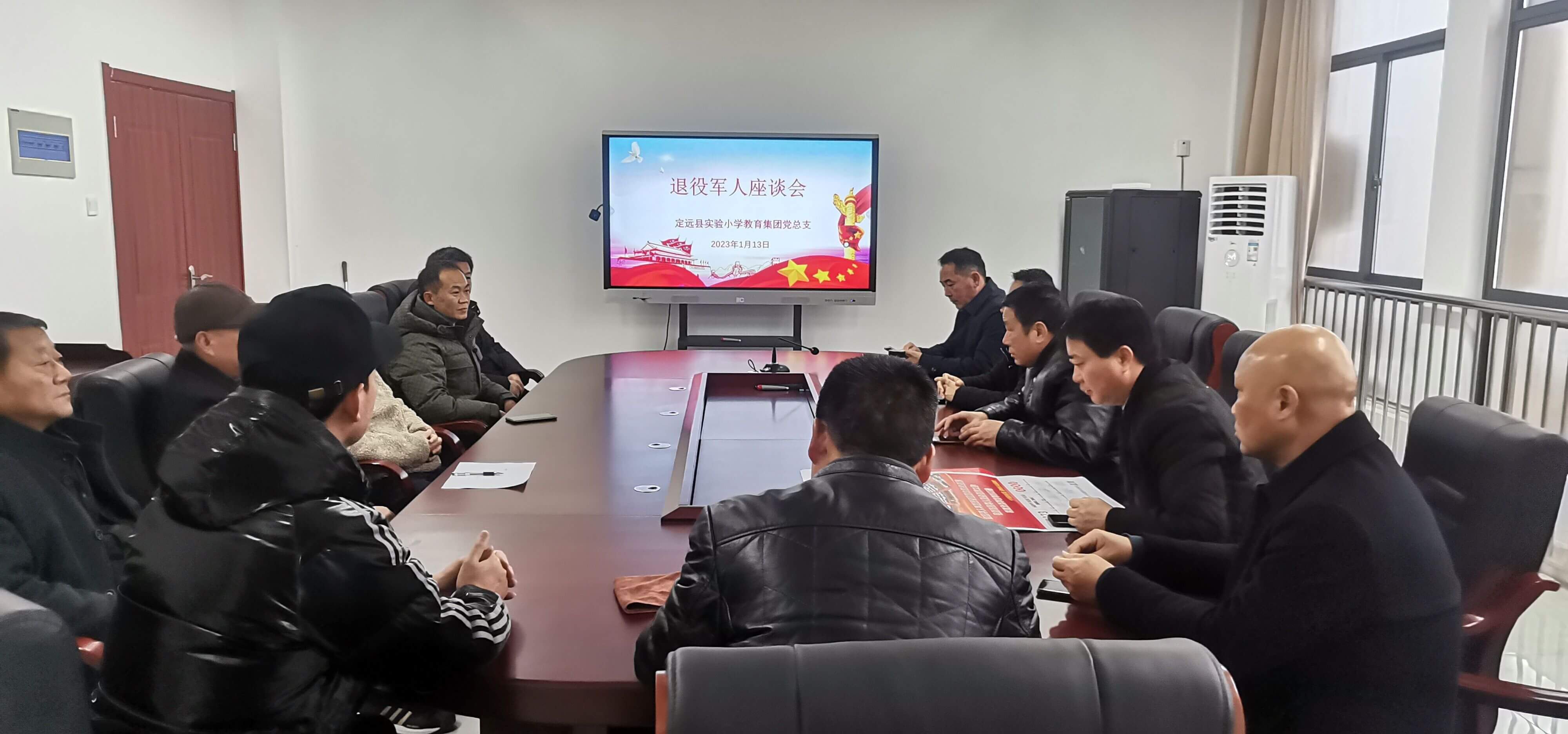 ~ 1月13日上午,定远县实验小学教育集团党总支在东兴路小学会议室召开退役军人座谈会,集团学校校领导与程永平等7名退役军人教职工进行亲切交谈,座谈会由集团学校校长陈恩源主持。