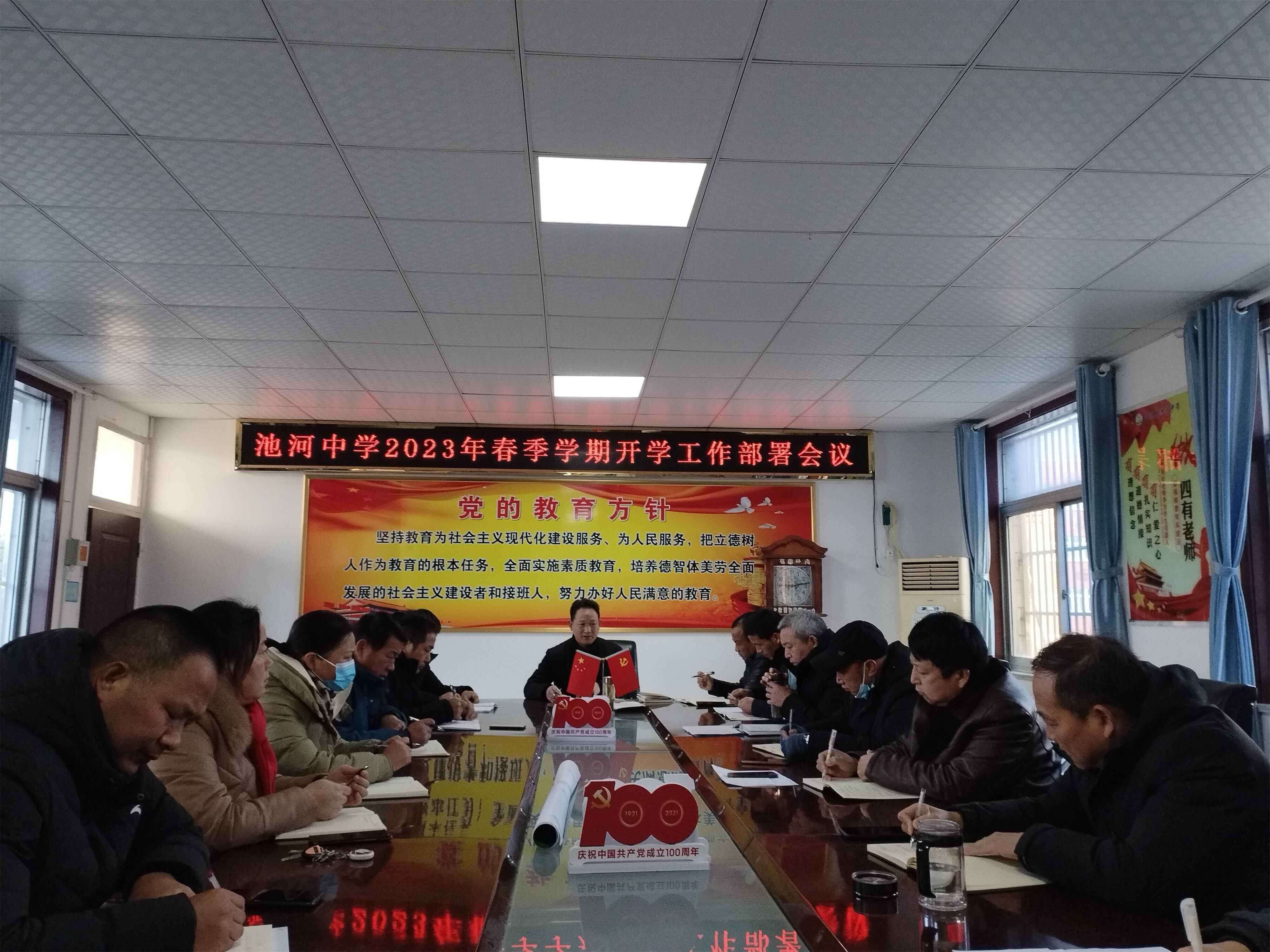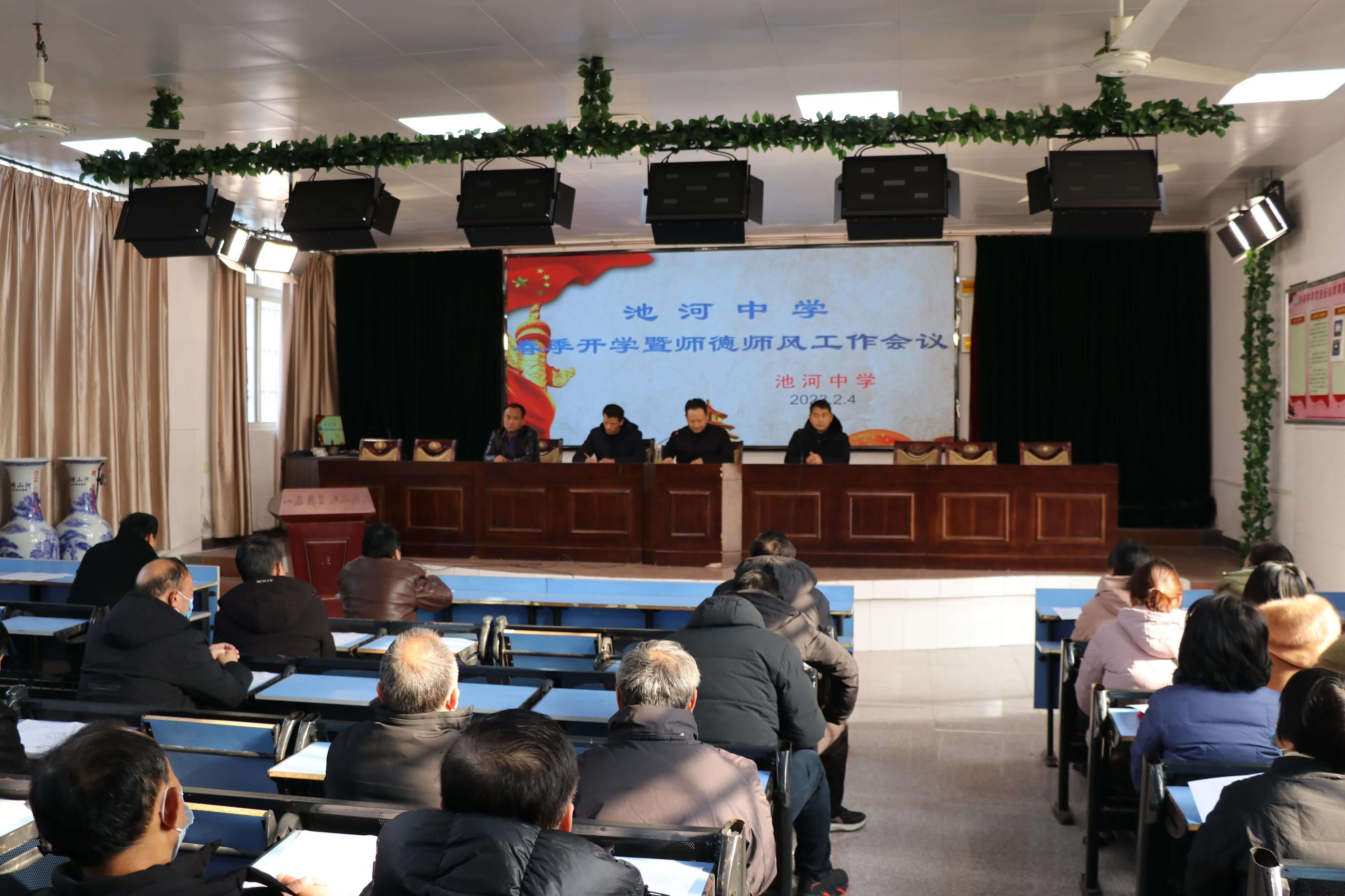 ~ 2月4日,定远县池河中学在校大会议室召开了2023年春季开学工作部署暨师德师风建设会议,为全校教职员工上好“开学第一课”进行全面细致部署。会议由党支部书记、校长欧健海主持,全体教职工参会。
