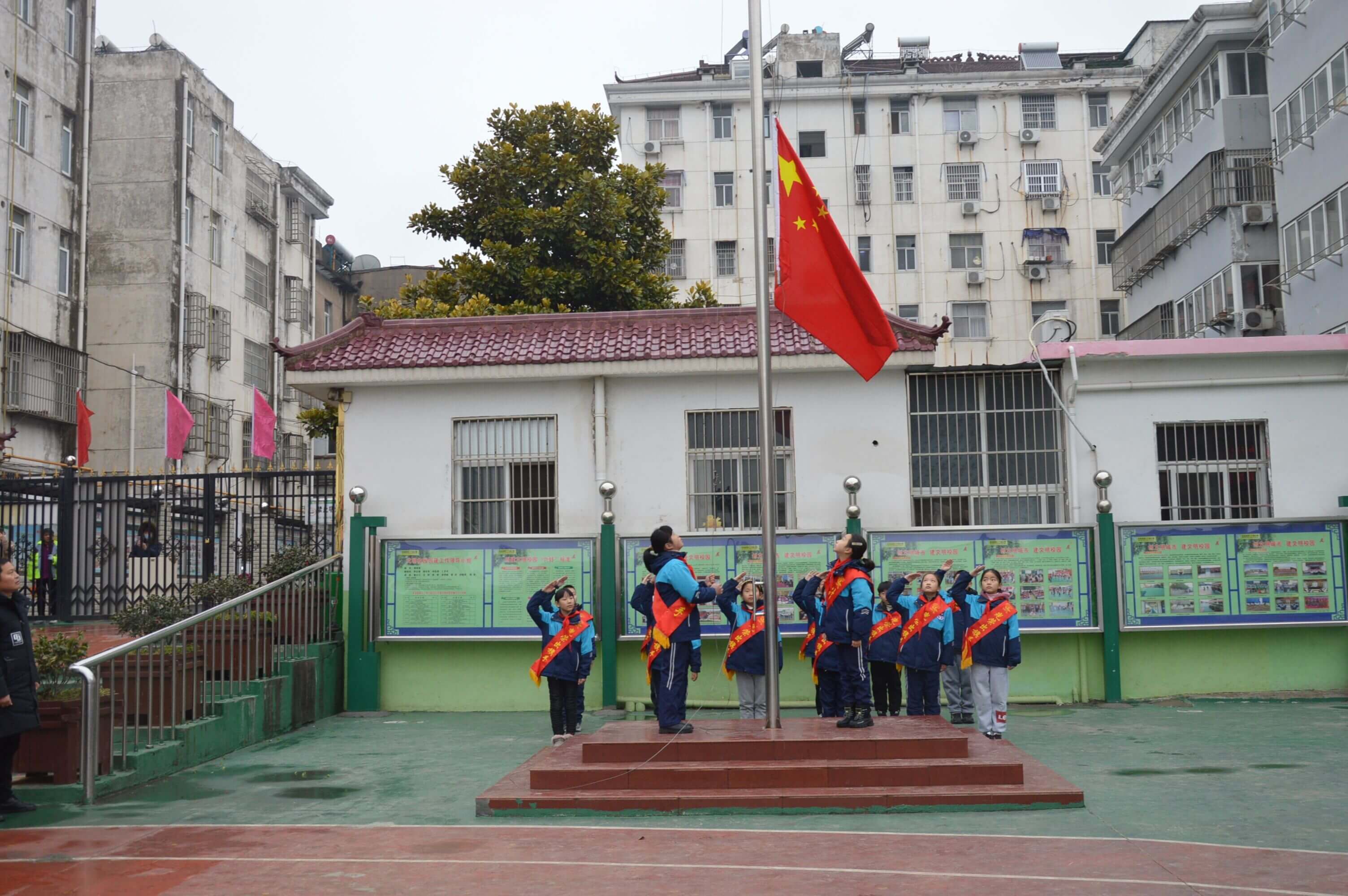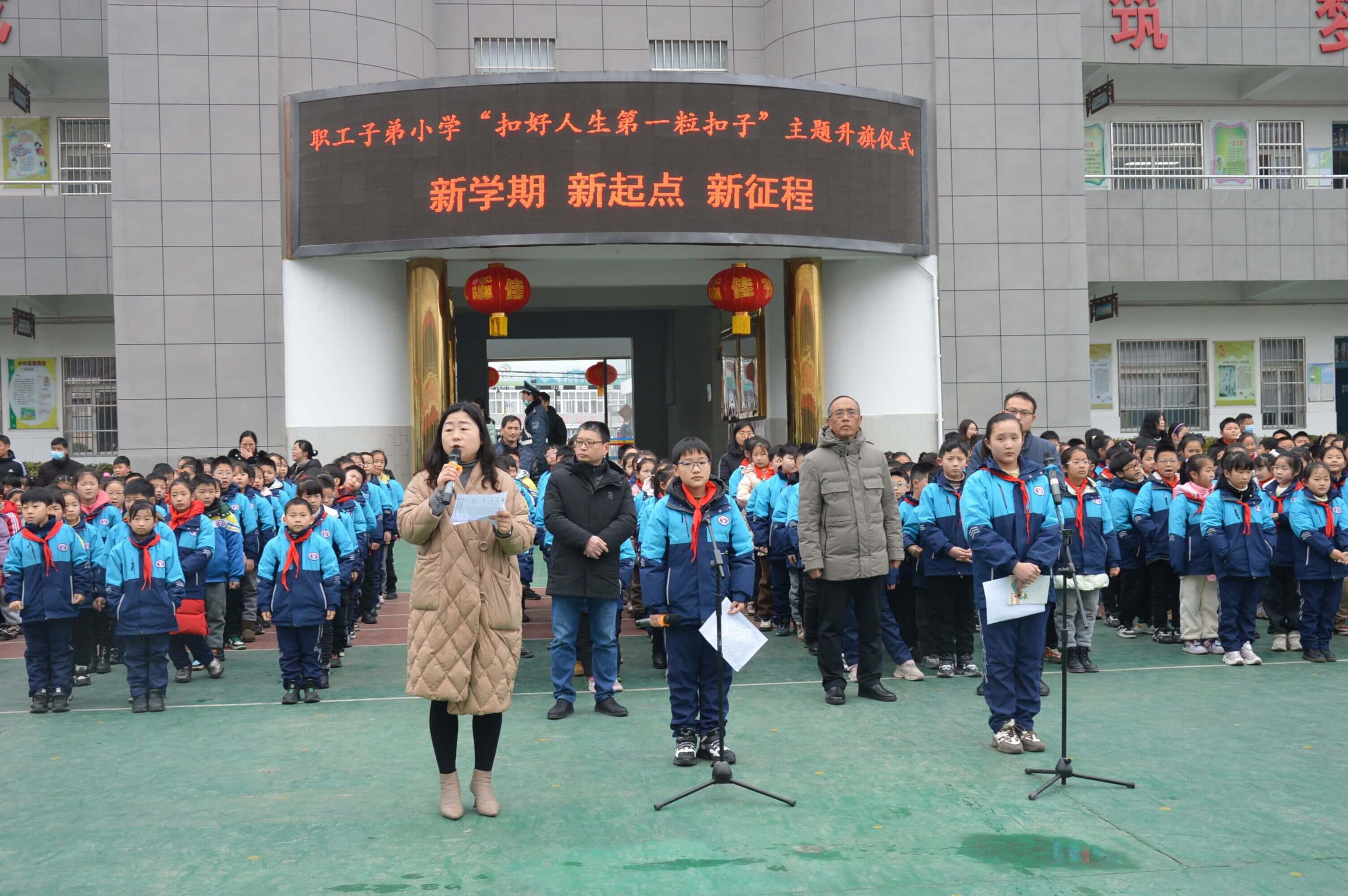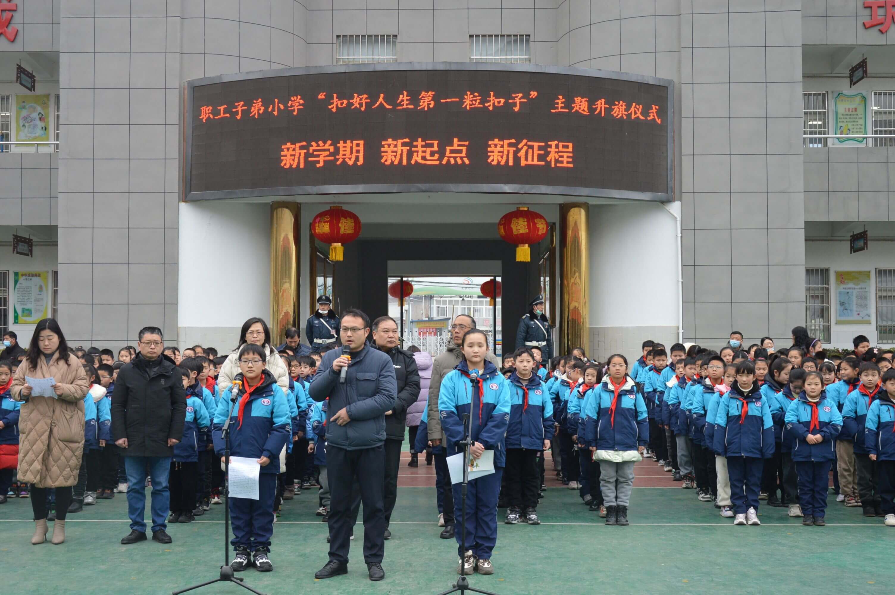 ~ 又是一年春暖花开的美好季节,寂静的校园随着新学期的到来,又充满了蓬勃的生机。2月7日清晨,定远县职工子弟小学在楼前广场举行了新学期“扣好人生第一粒扣子”主题升旗仪式,学校党支部书记、校长杨孝前和全体师生参加了活动。