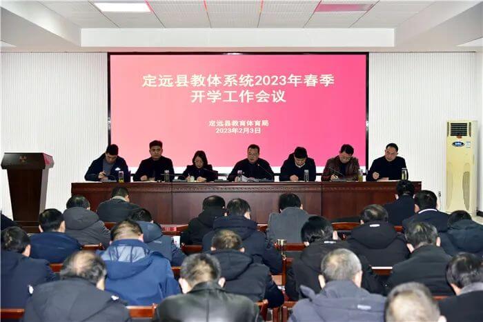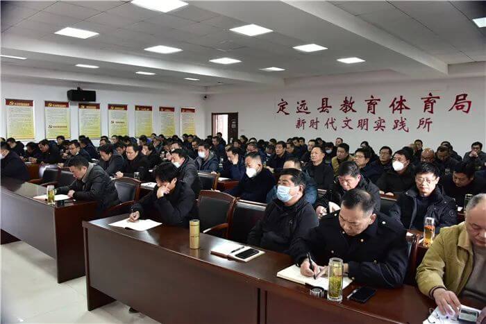 ~ 2月3日下午,定远县教体局召开全县教体系统2023年春季学期开学工作会议,安排部署开学重点工作,为新学期凝心聚力,增效赋能,持续助推定远教育高质量发展。教体工委班子成员、局机关干部职工和全县中小学校(园)长130余人参加会议,县委教体工委书记、教体局局长王光明主持会议并作总结讲话。