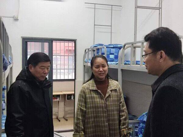 ~ 2月9日上午,定远县政府副县长许倩在教体工委书记、教体局局长王光明等人的陪同下,冒雨深入张桥中学检查指导2023年春季开学工作。
