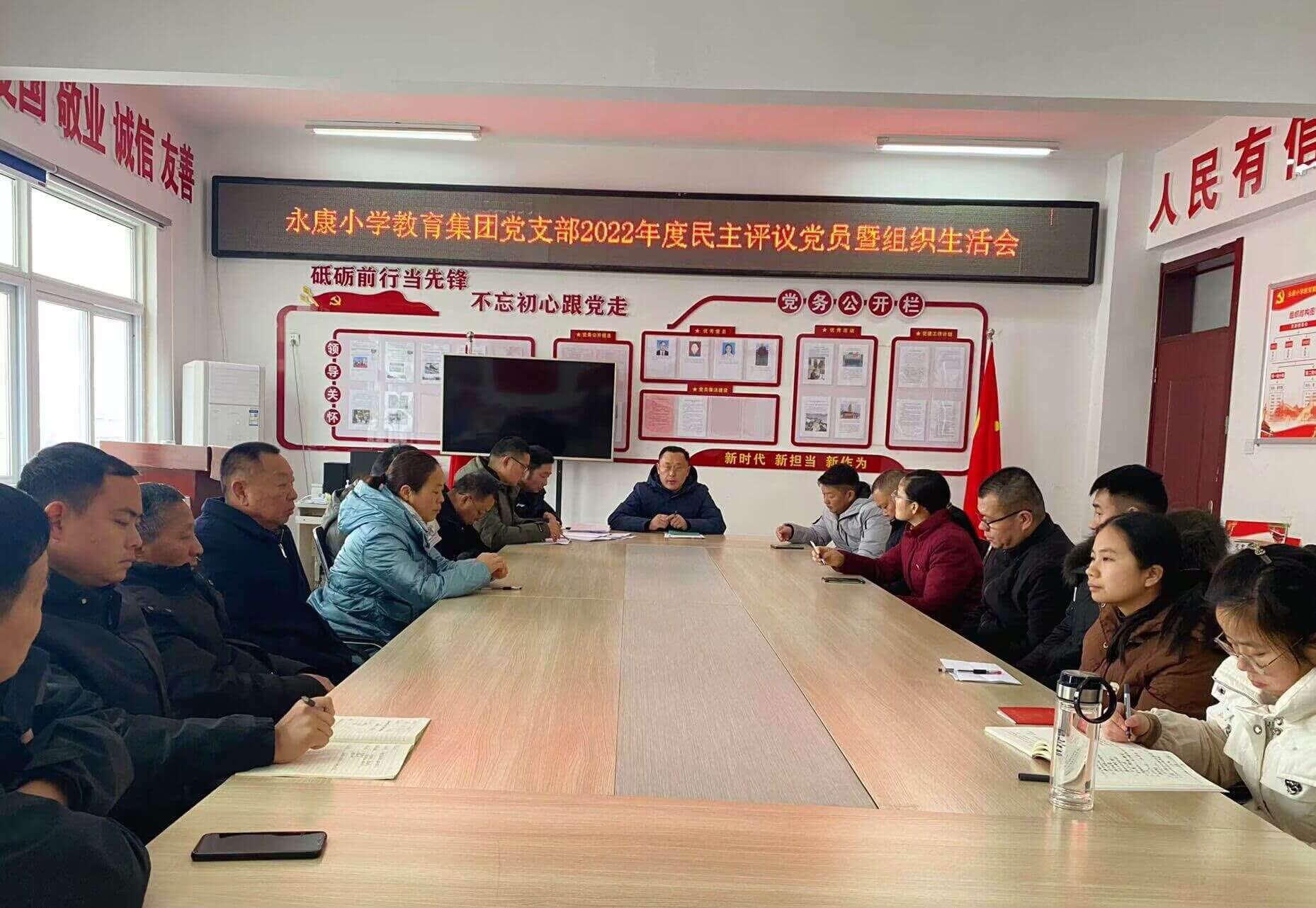 ~ 2023年2月10日上午,定远县永康小学教育集团党支部召开2022年度组织生活会暨民主评议党员会议,全体在职党员参加,会议由永康小学教育集团党支部书记黄海山主持。