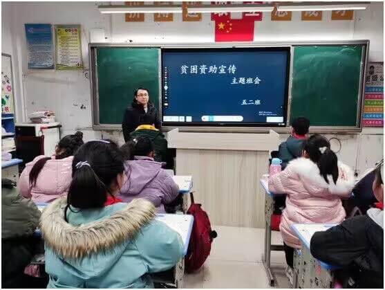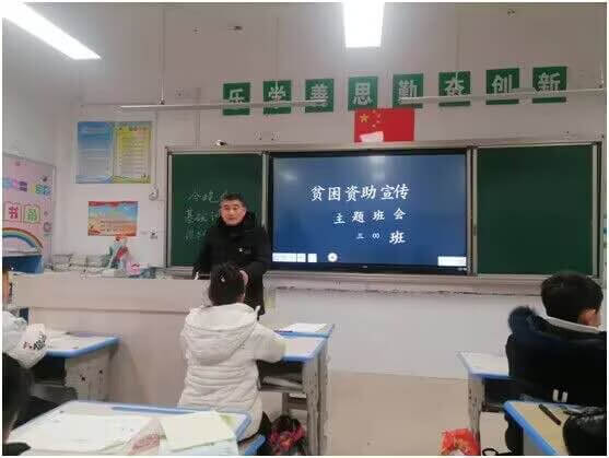 ~ 2月6日,学校召开了全体教职工大会,对宣传活动做了安排。动员会上,校长张道胜详细解读了贫困生资助工作的政策及注意事项,强调贫困生资助政策宣传的重要性,要求把脱贫户学生、特困供养、孤儿、残疾学生、农村低保家庭学生、城市低保家庭学生、脱贫不稳定户学生、边缘易致贫户学生、突发严重困难户学生的资助工作宣传到家、服务到人。组织召开“贫困资助宣传主题班会”,带领学生认真学习资助政策,各班主任对资助对象、资助种类和资助标准进行了讲解,并通过班级微信群宣传相关政策。