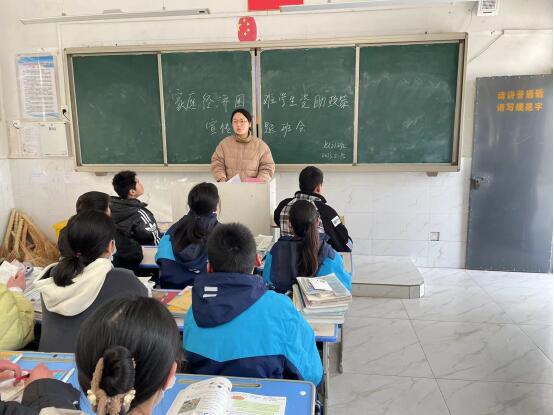 ~ 活动中,学校党支部书记、校长单国选领学了2023年春季学期家庭经济困难学生资助政策,并就政策中的重点内容进行了详细解读。要求班主任要通过主题班会、微信群、QQ群、家访等多形式地开展家庭经济困难资助政策宣传,并对本班学生家庭经济情况进行详细摸排,确保符合国家资助政策的贫困生“一个不能少”。班会课上,各班主任老师通过宣传材料、短视频、PPT等形式,带领大家认真学习了2023年春季学期家庭经济困难学生贫困资助政策,重点围绕“资助对象”、“资助种类”、“资助标准”等进行了详细讲解,并要求全体同学要以“小手拉大手”的形式,积极做好贫困生资助政策宣传员。