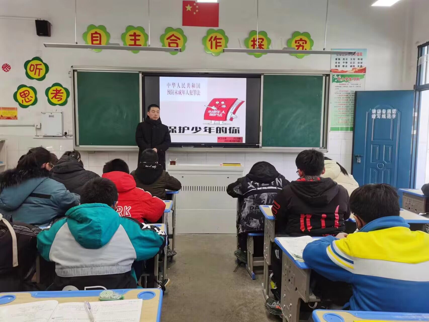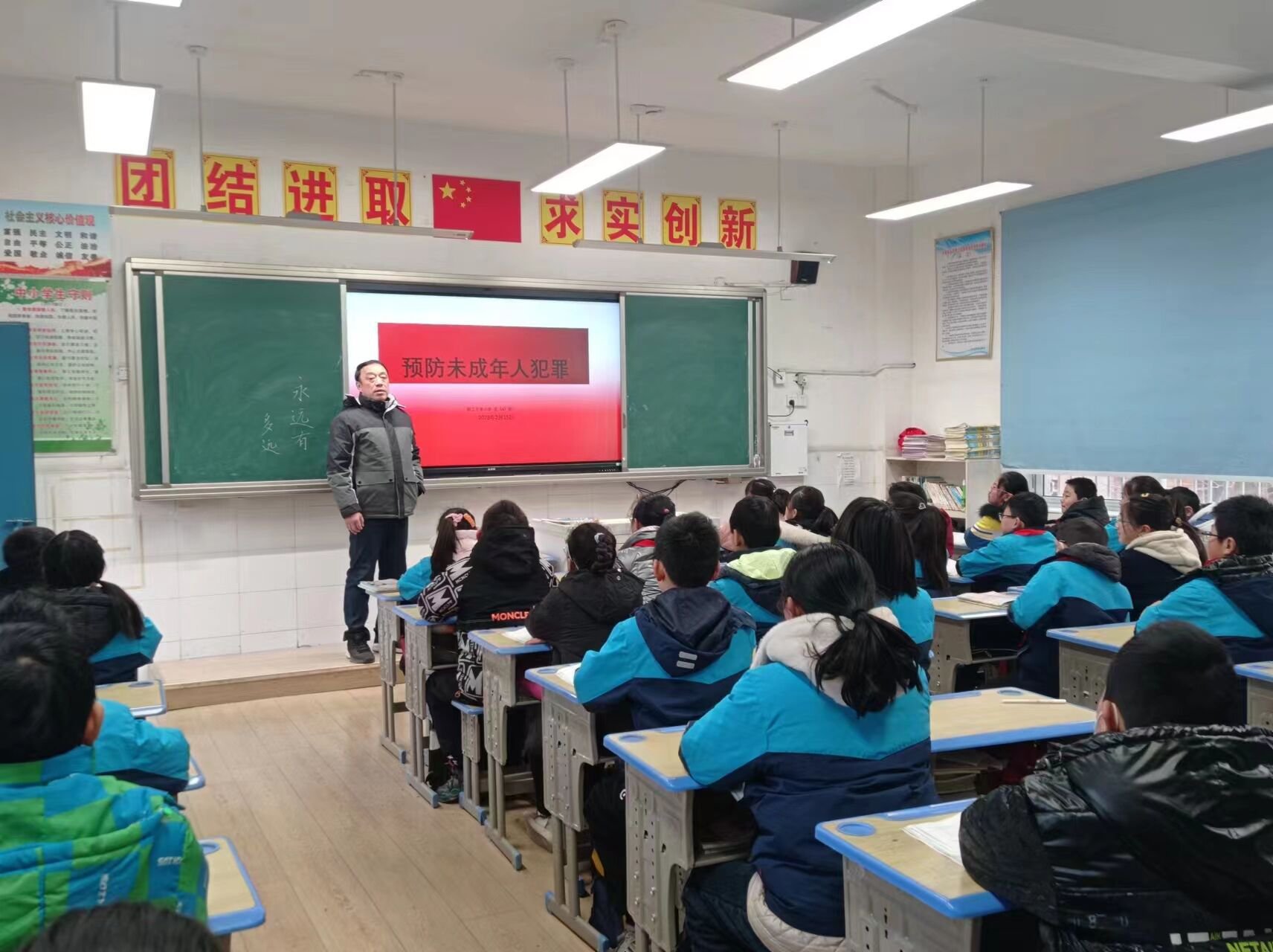 ~ 首先,学校通过电子屏和宣传大屏普及和宣传关于预防未成年人违法犯罪内容和宣传标语。接着,各班级召开预防未成年人违法犯罪主题教育班会来学习和宣传《未成年人保护法》,同时结合真实案例和图片,用通俗易懂的语言为学生们讲解了预防未成年人违法犯罪的相关要求。