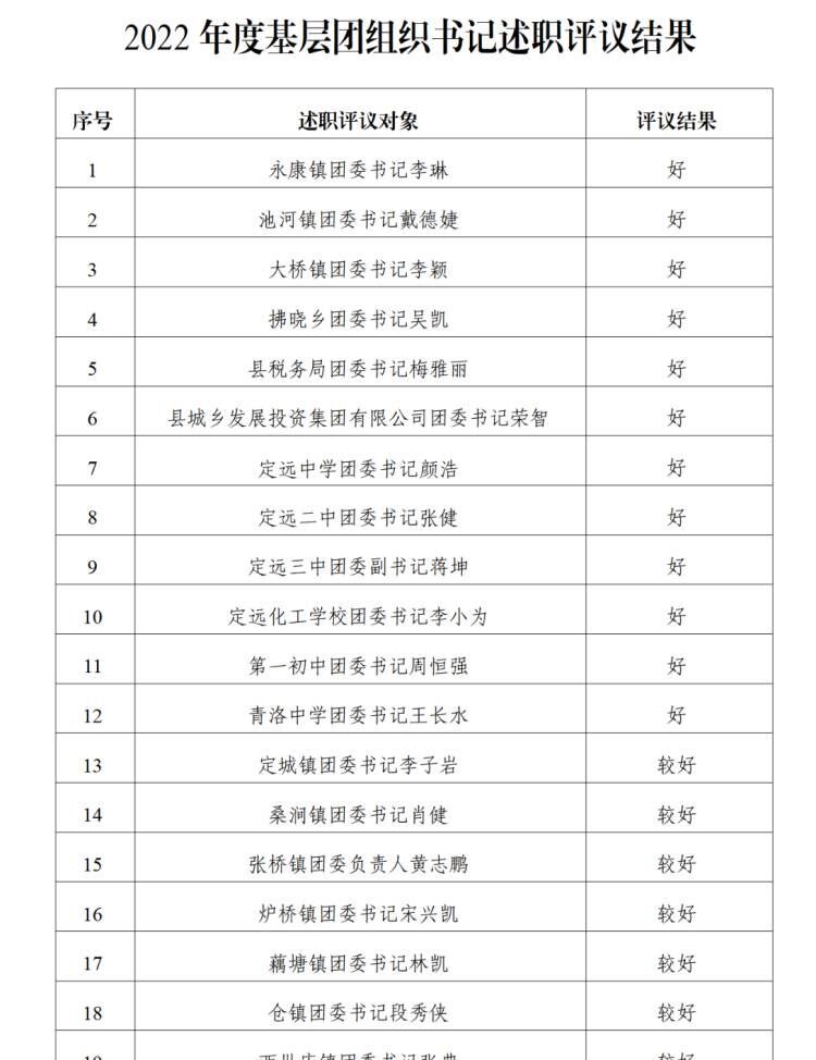 ~ 年初,共青团定远县委召开了2022年度基层团组织书记述职评议会议,62位基层团组织书记进行了汇报述职,第一初中教育集团团委书记周恒强老师参加了述职测评会,结合述职评议和日常掌握等情况,最终得出评议结果。